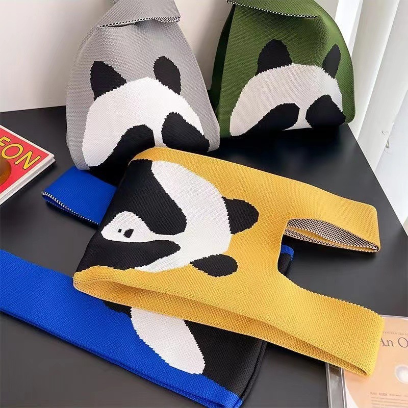 단오절 귀여운 팬더 니트 핸드백, 중국 패션 만화 모직 여성용 가방, 손목 가방, 여름 패션, 한국어 버전, 다용도스토어 가기