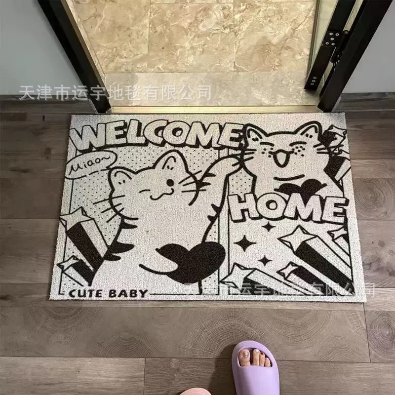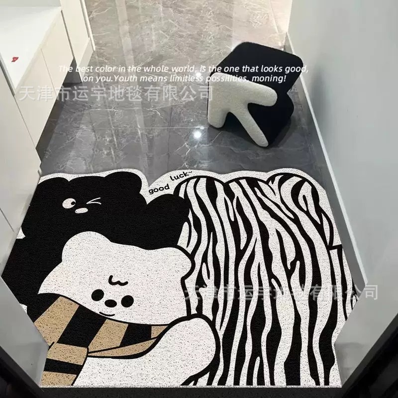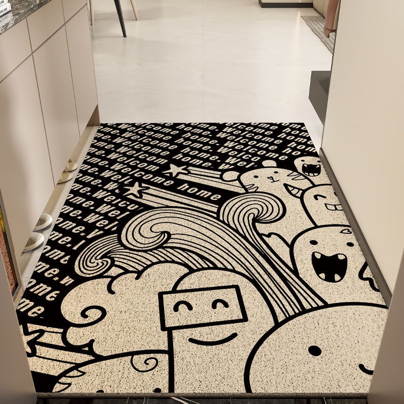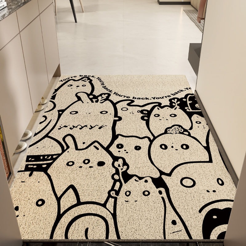 작은 괴물 만화 입구 문 실크 루프 바닥 매트 거실 입구 카펫 미끄럼 방지 가정용 발 매트 절단 가능스토어 가기