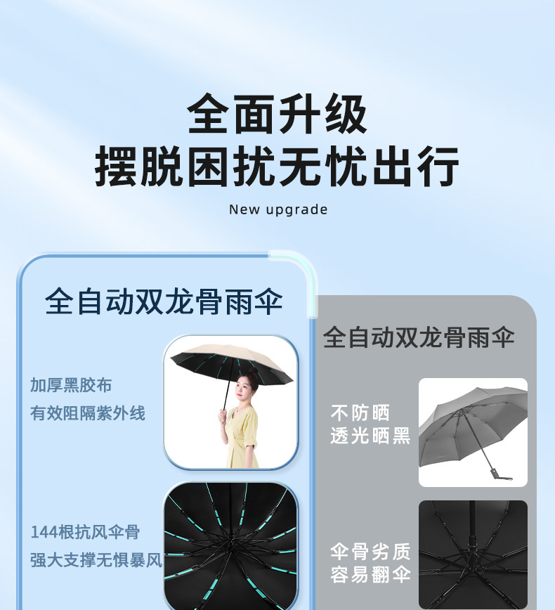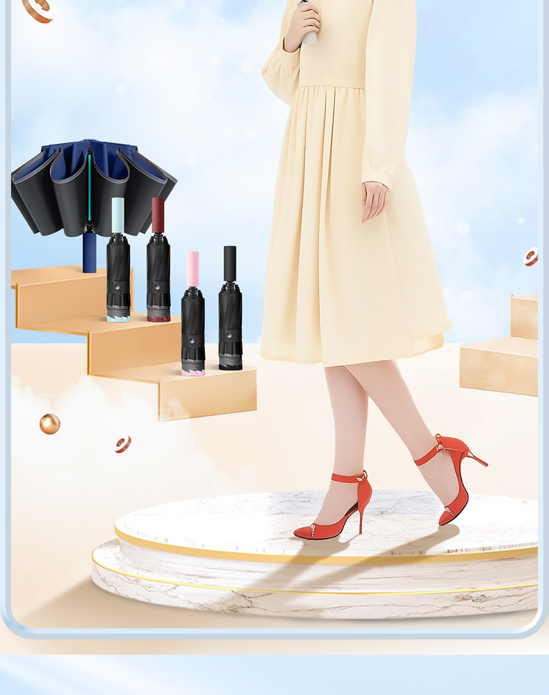 새로운 144 뼈 완전 자동 역방향 우산 비 또는 샤인 비닐 태양 보호 UV 차양 태양 우산 광고 우산스토어 가기