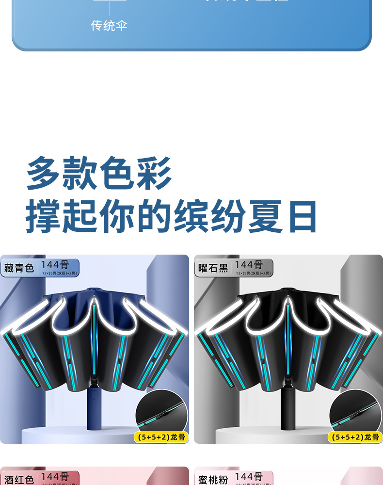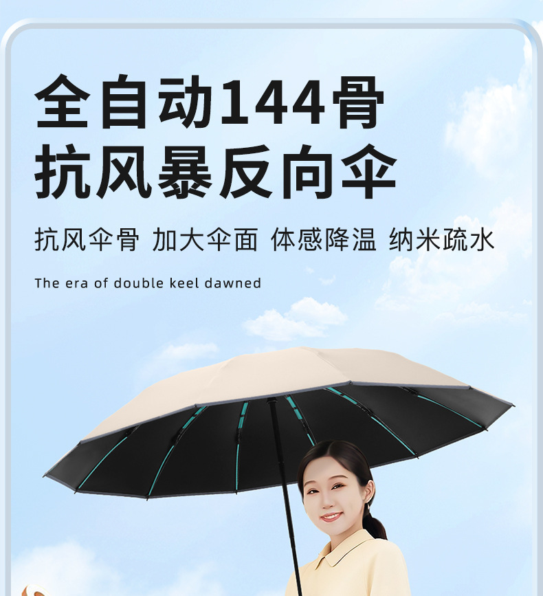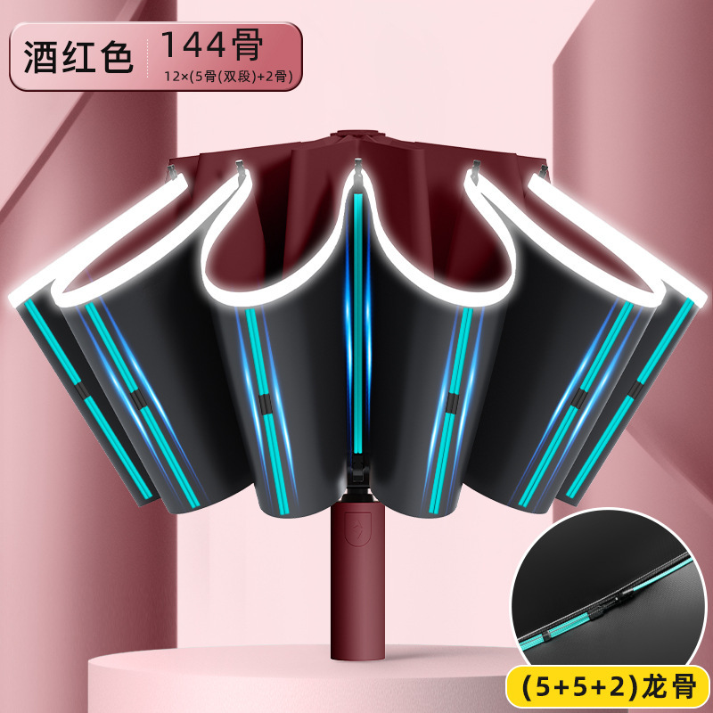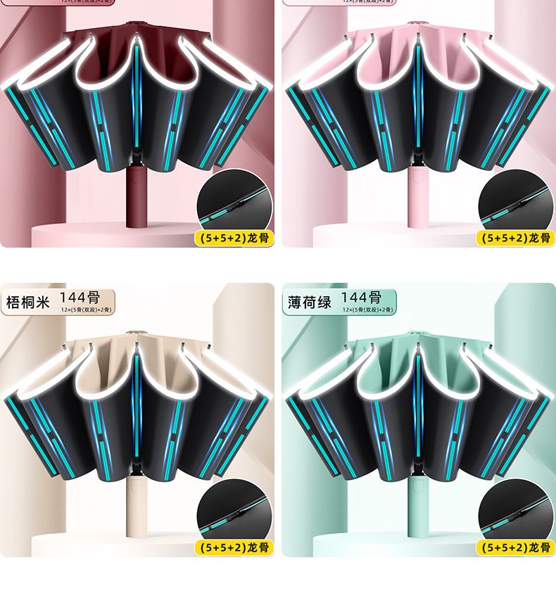 새로운 144 뼈 완전 자동 역방향 우산 비 또는 샤인 비닐 태양 보호 UV 차양 태양 우산 광고 우산