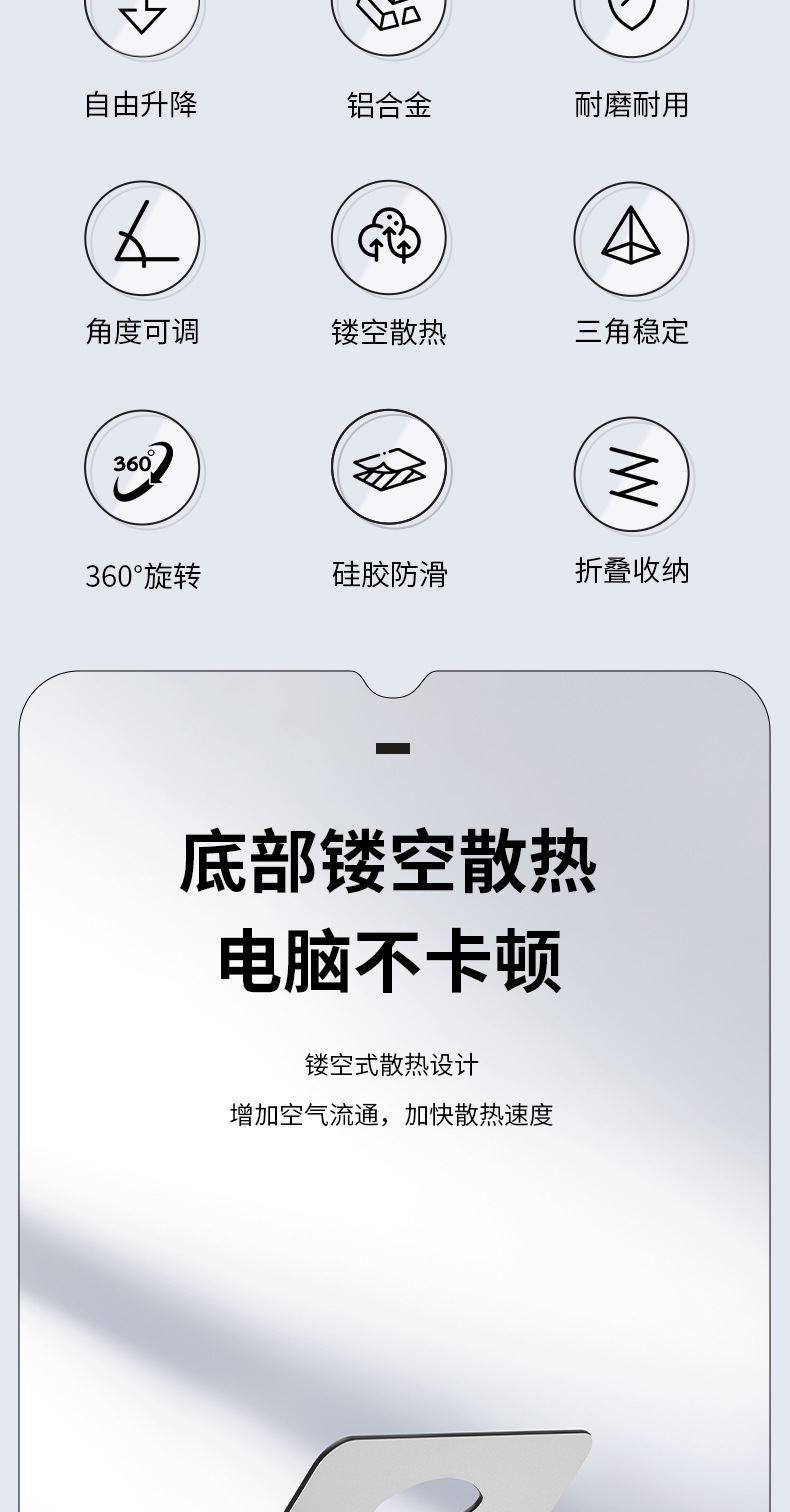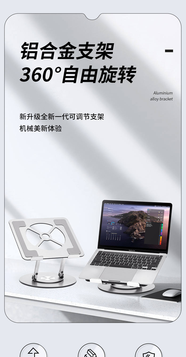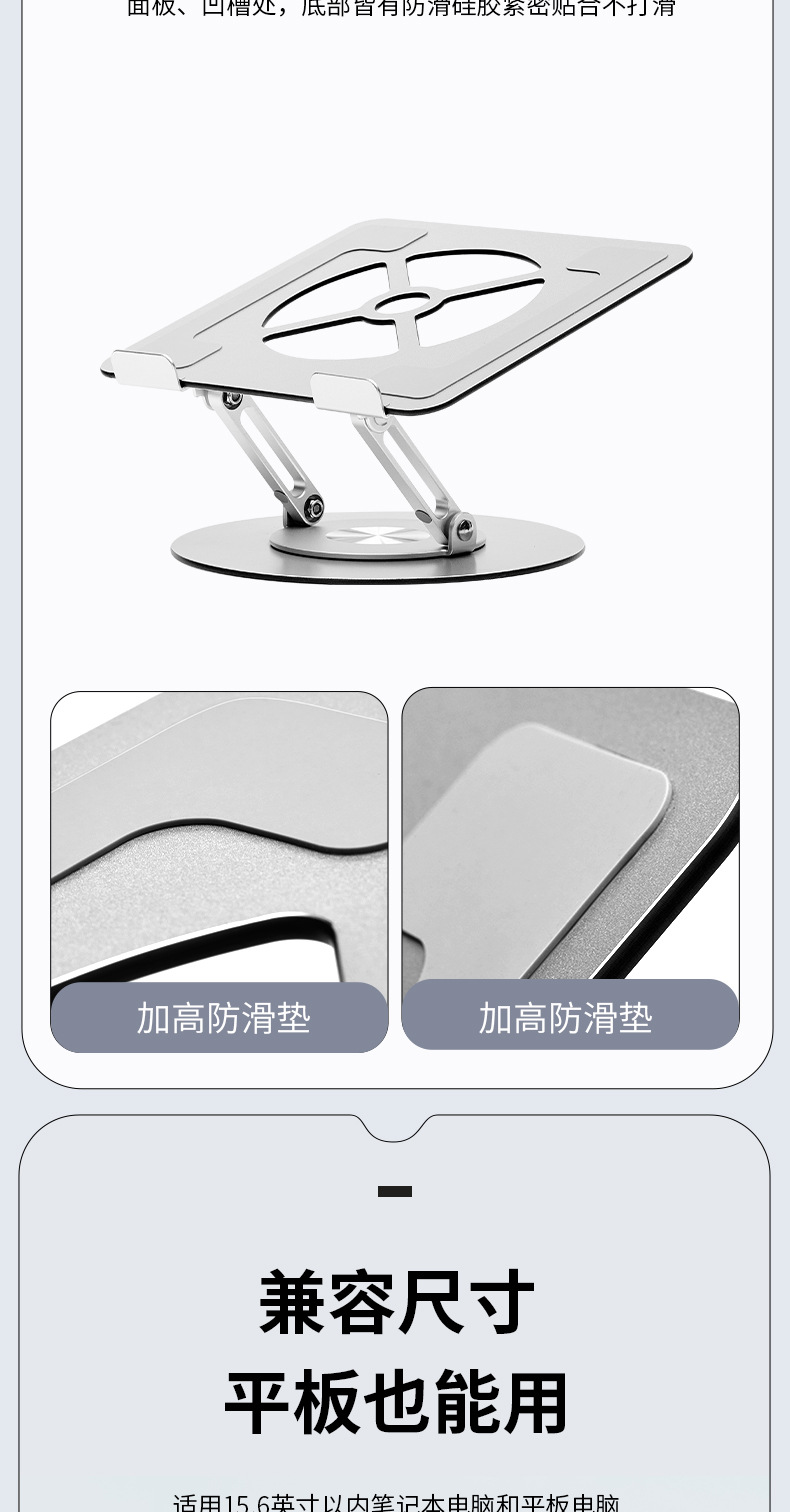 알루미늄 합금 회전 가능한 노트북 스탠드 데스크탑 수직 높은 교수형 리프팅 지원 방열베이스