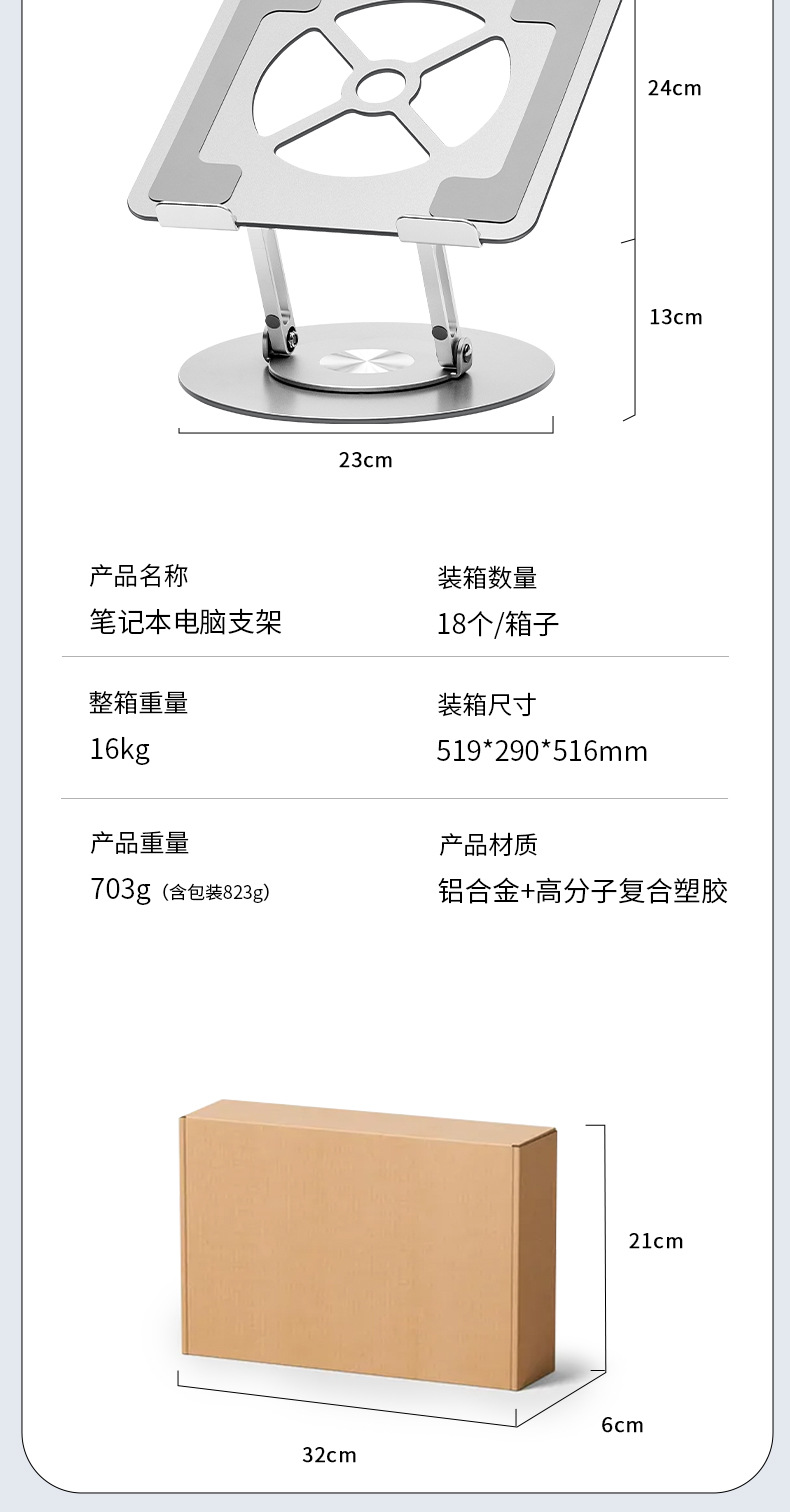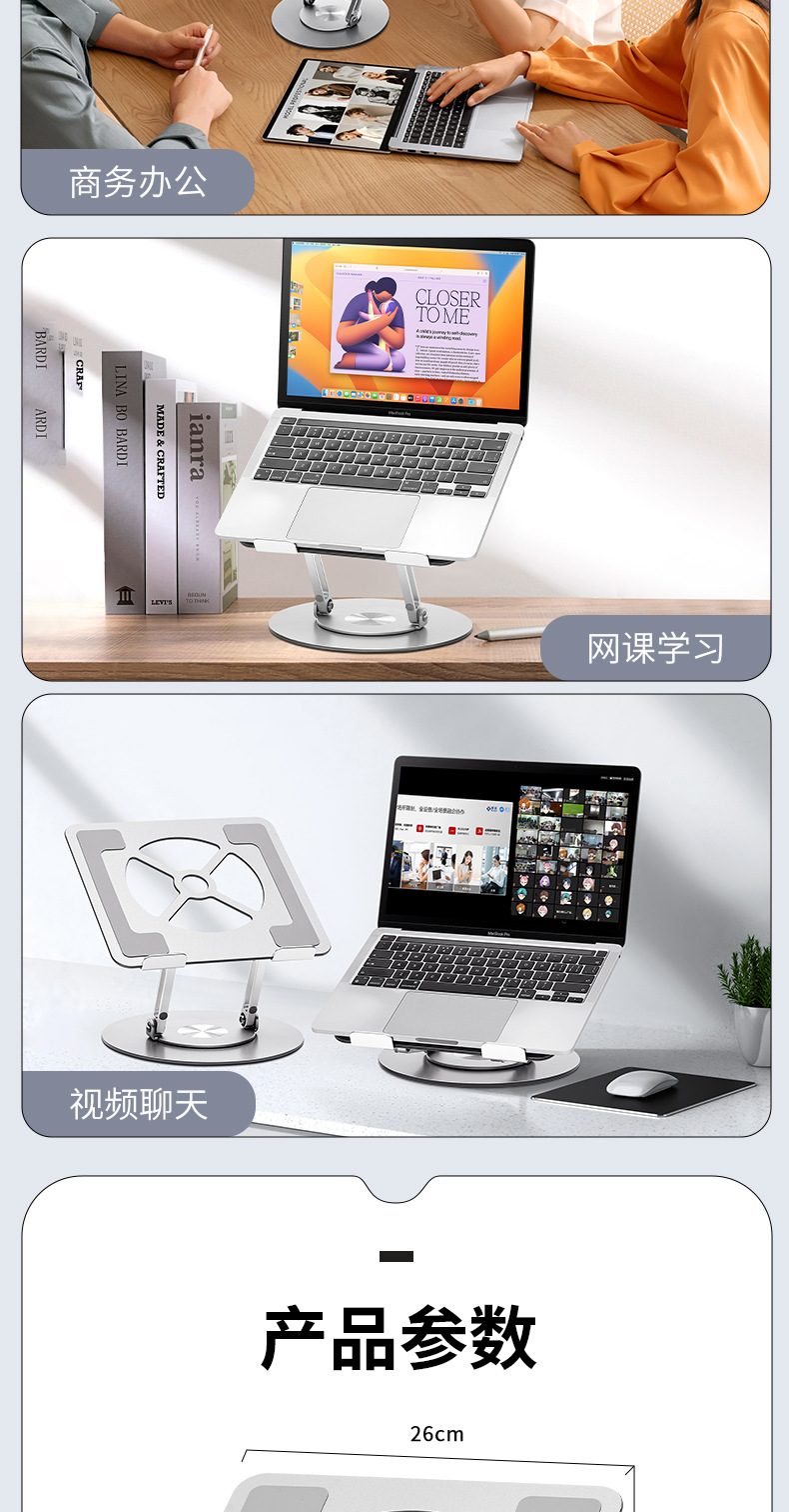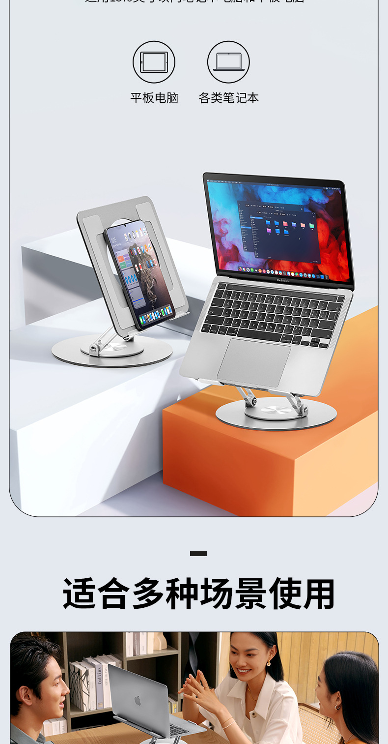 알루미늄 합금 회전 가능한 노트북 스탠드 데스크탑 수직 높은 교수형 리프팅 지원 방열베이스스토어 가기