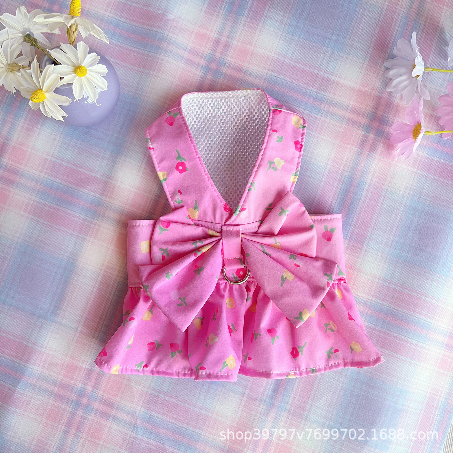 Ins 스타일 신선한 꽃 가슴 다시 원피스 애완 동물 개 고양이 옷 봄 여름 가을 밖으로 추적 가능한 곰스토어 가기