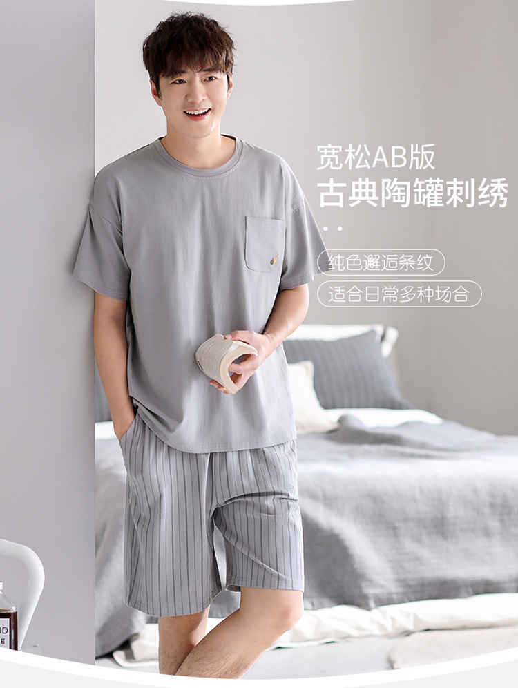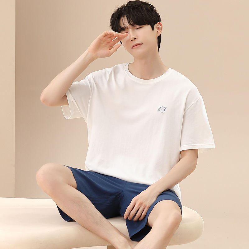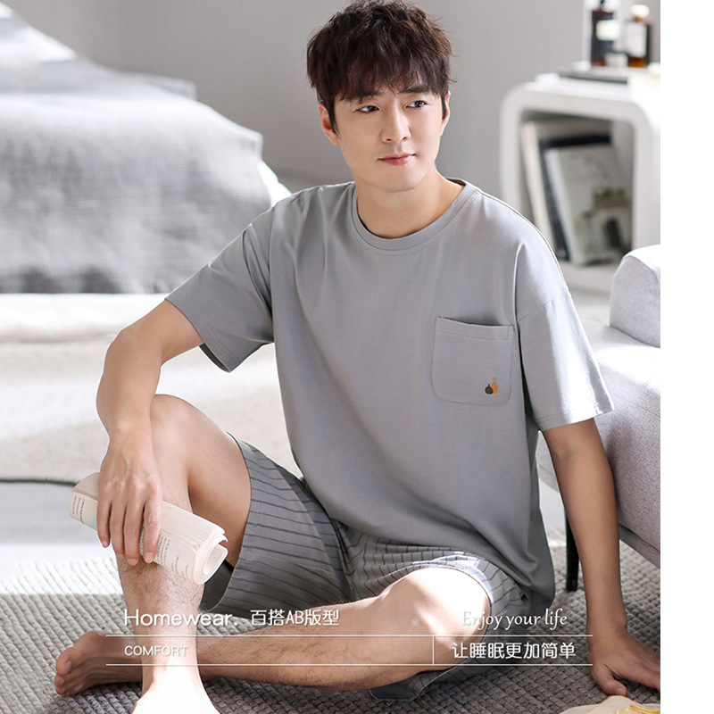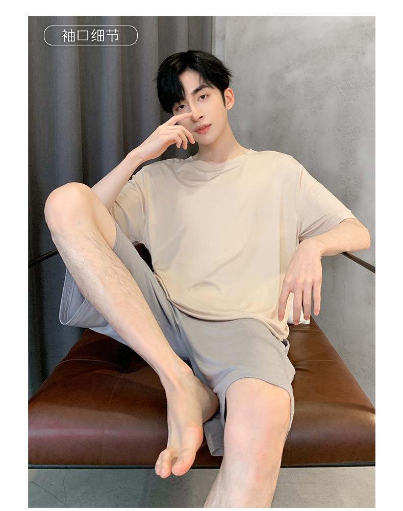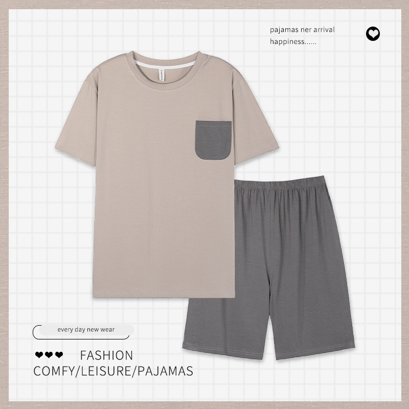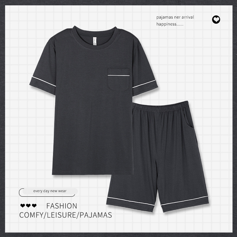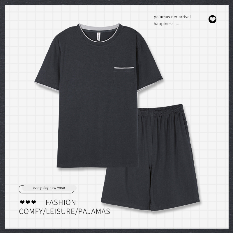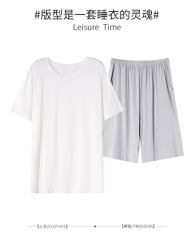 모달 잠옷 남자의 여름 반팔 인쇄, 단색 얇은 둥근 목 느슨한 플러스 사이즈 여름 홈 옷 봄