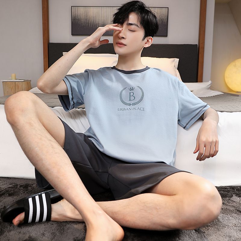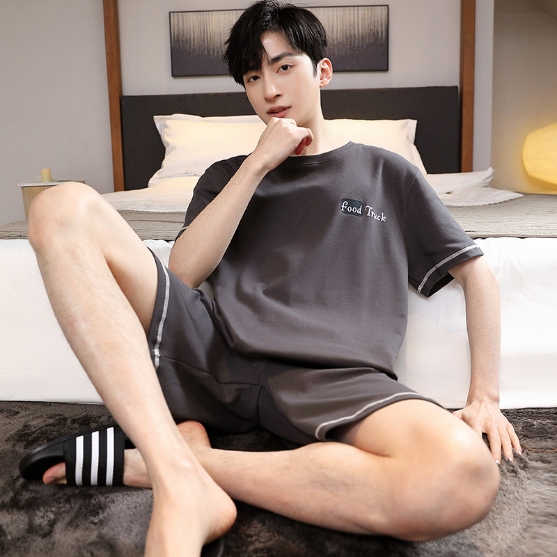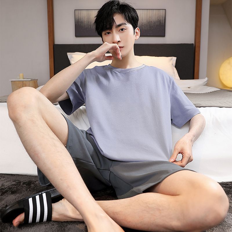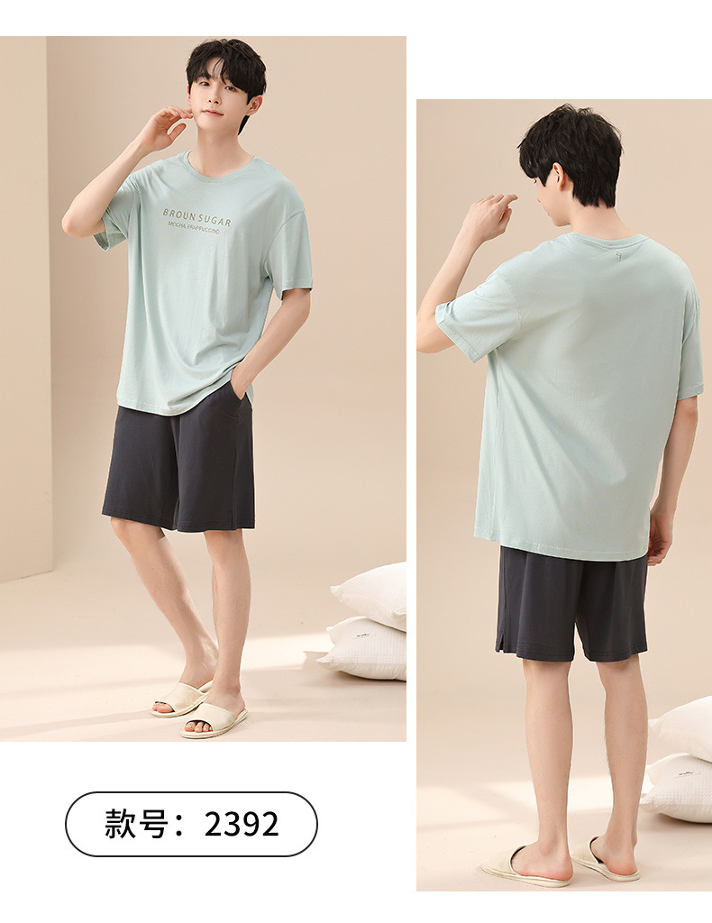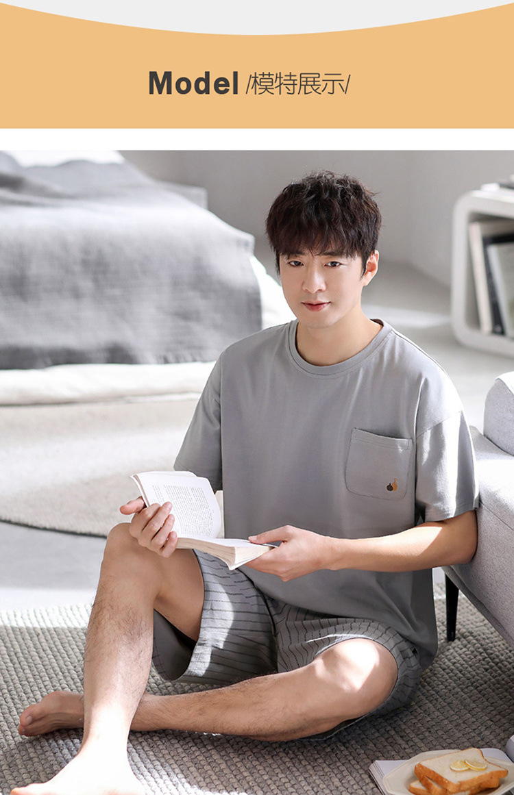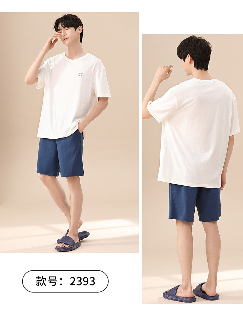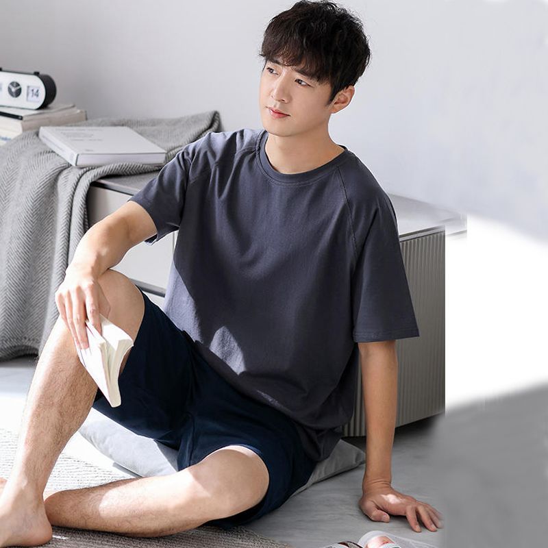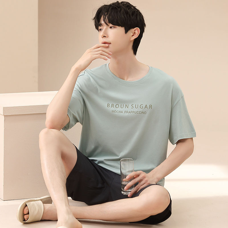 모달 잠옷 남자의 여름 반팔 인쇄, 단색 얇은 둥근 목 느슨한 플러스 사이즈 여름 홈 옷 봄