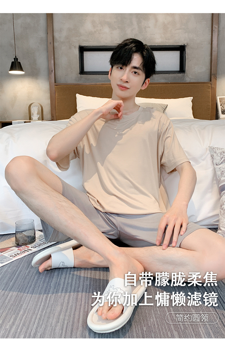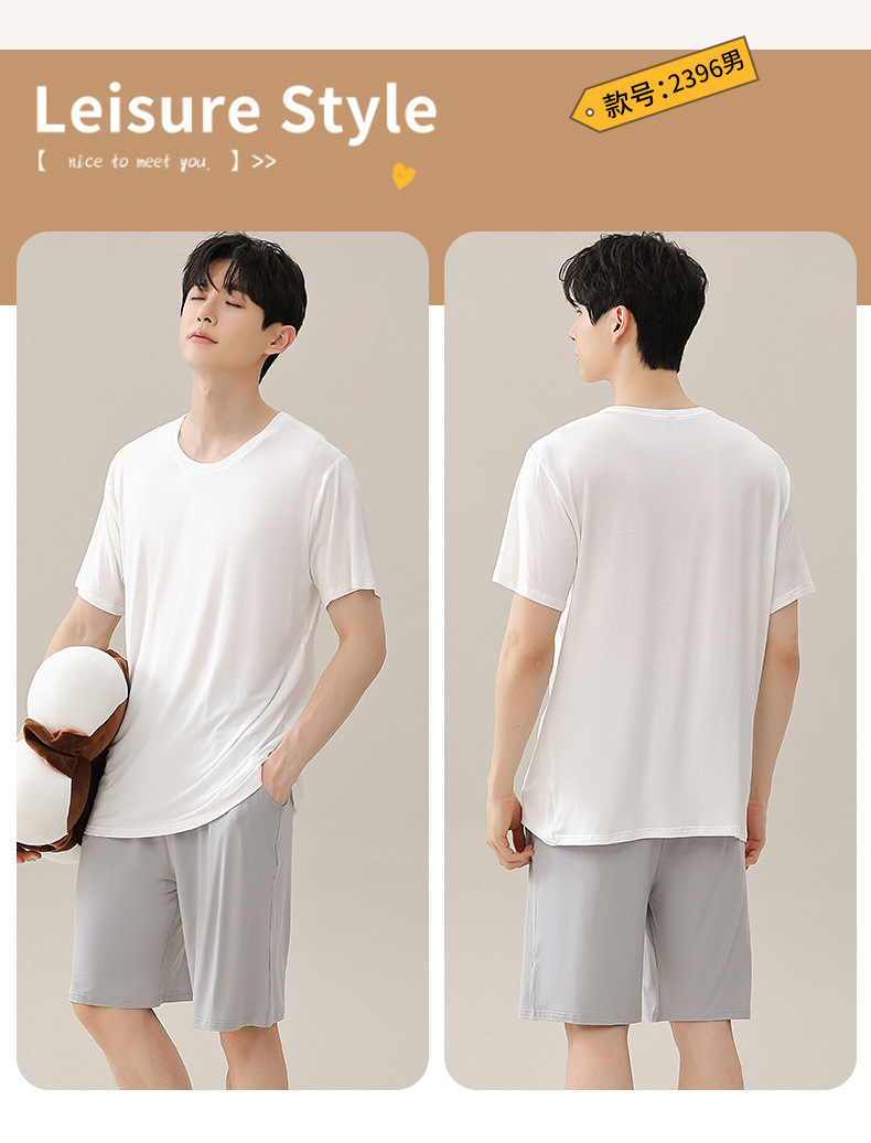 모달 잠옷 남자의 여름 반팔 인쇄, 단색 얇은 둥근 목 느슨한 플러스 사이즈 여름 홈 옷 봄스토어 가기