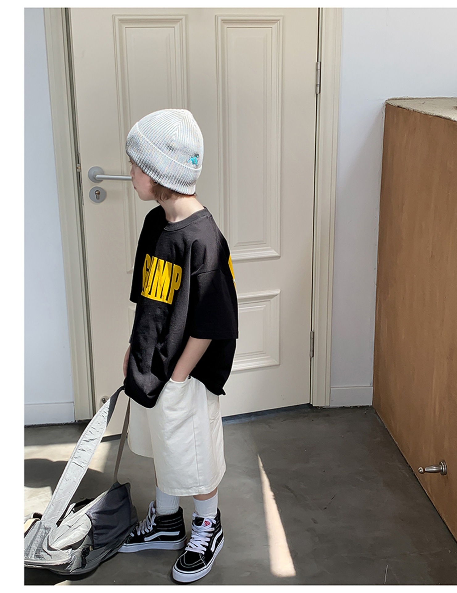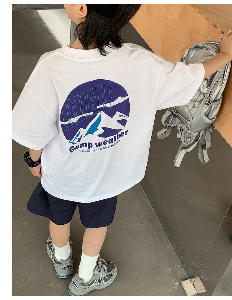 2025 소년과 소녀를위한 새로운 여름 옷 라운드 넥 티셔츠 반팔 유행 어린이 반팔 한국 스타일 베이비 탑 남성 유행스토어 가기