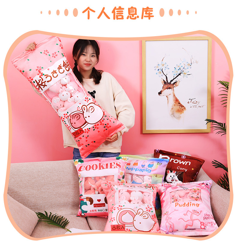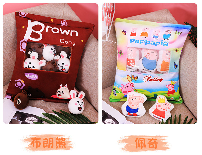 국경 인터넷 빨간 만화 스낵 가방 인형 베개 작은 동물 귀여운 창조적 인 봉제 장난감 대외 무역 도매 인형스토어 가기