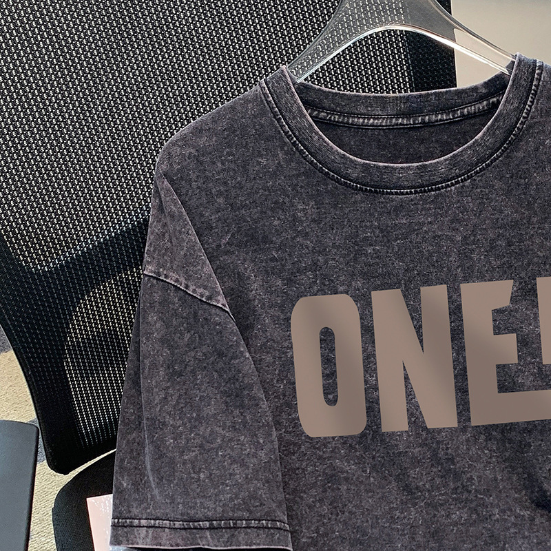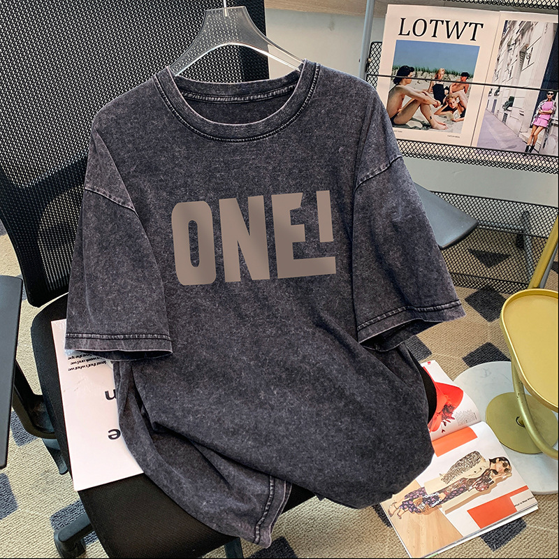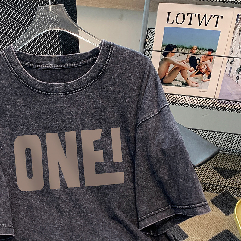 한국 유행 브랜드 인쇄 편지 남성과 여성을위한 반팔 티셔츠 여름 미국 레트로 하이 스트리트 커플 느슨한 반팔 티셔츠스토어 가기