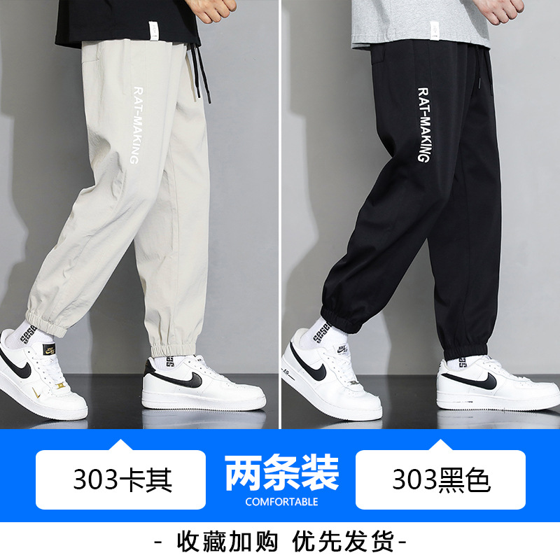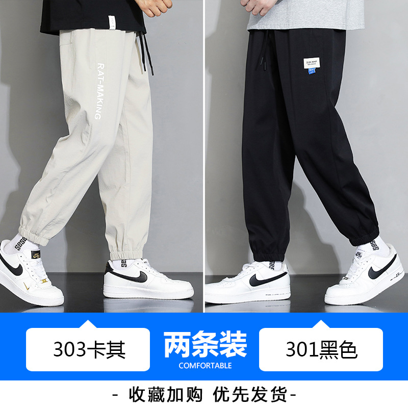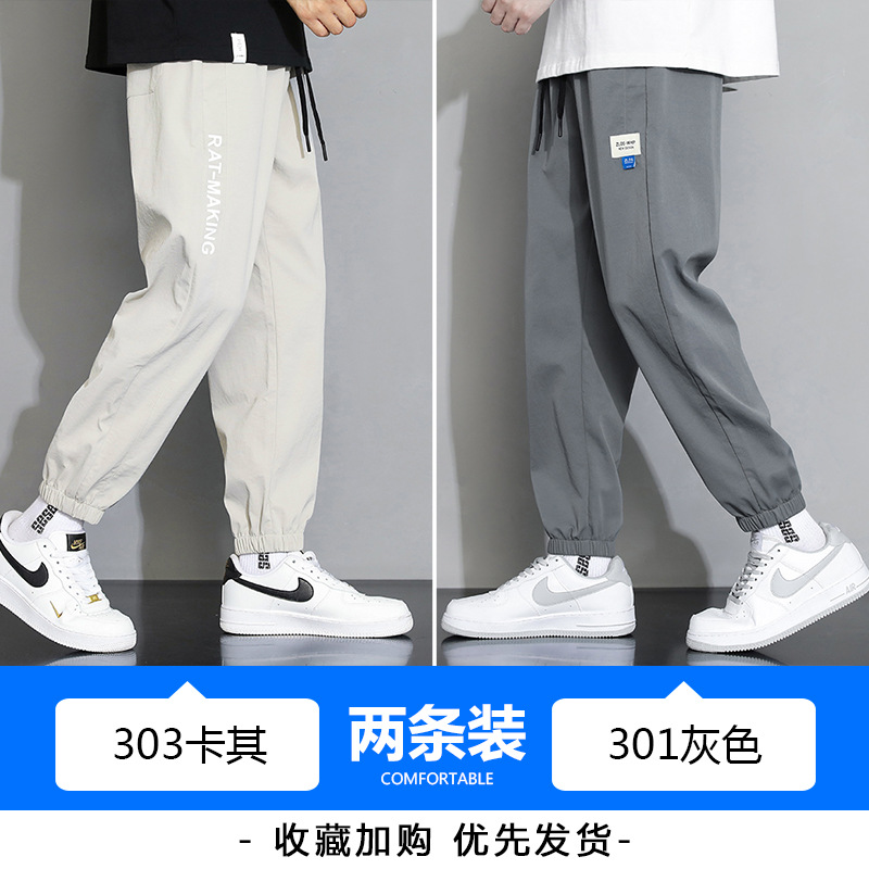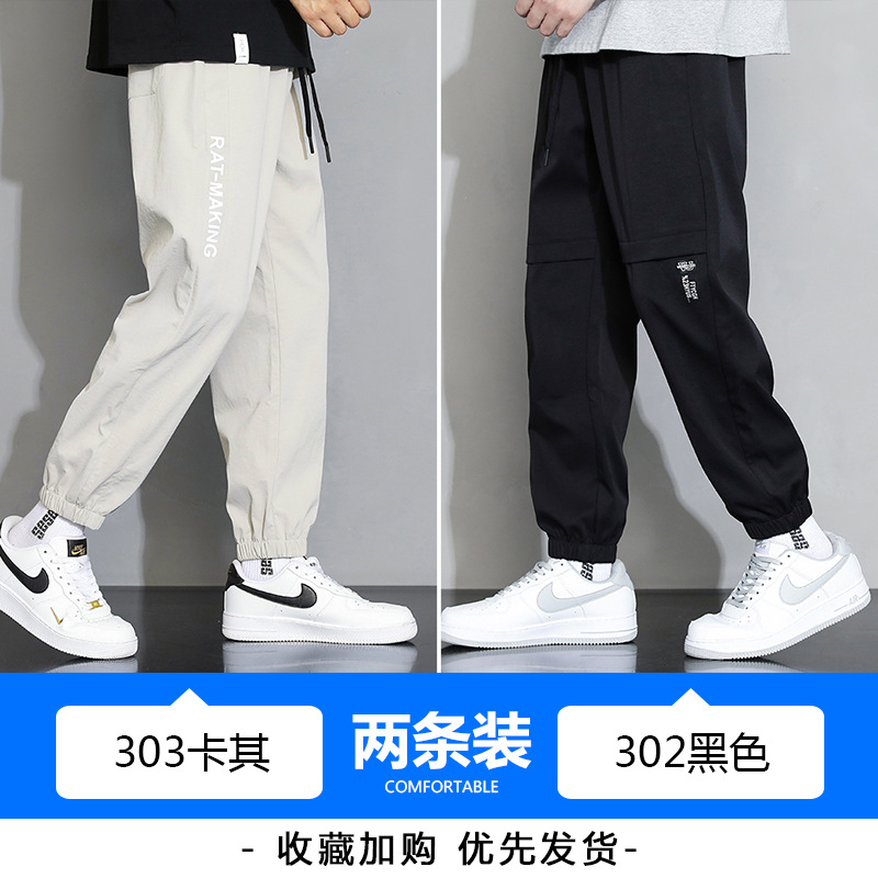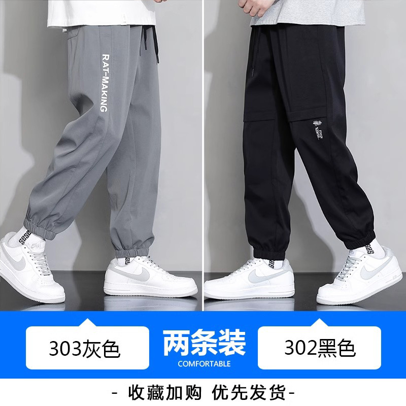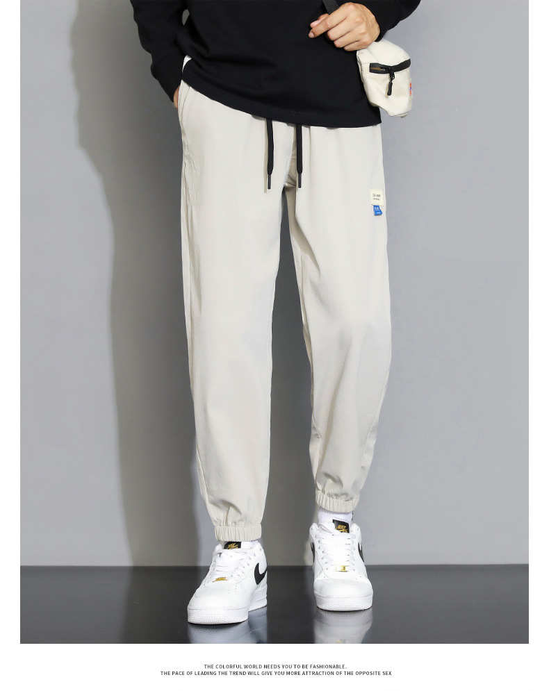 NASA 아이스 실크 캐주얼 바지 남자 여름 얇은 빠른 건조 스포츠 느슨한 다리 여름 유행 남자 자른 바지