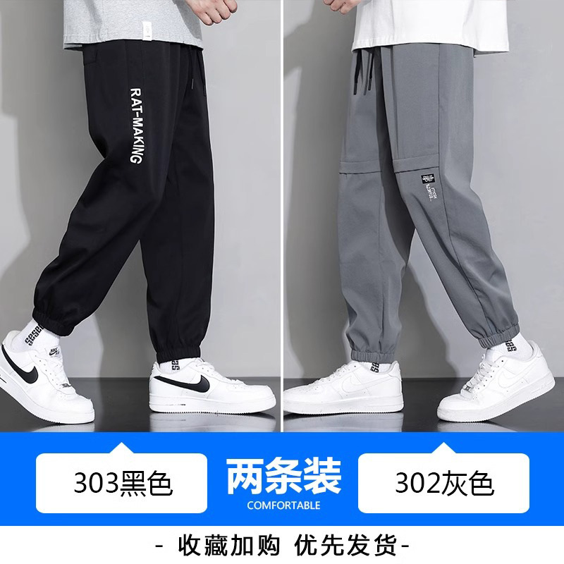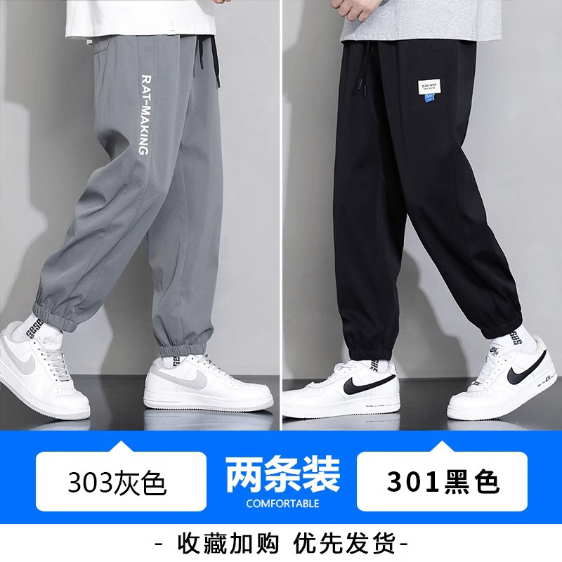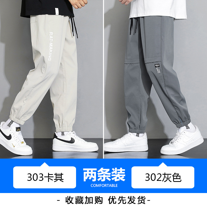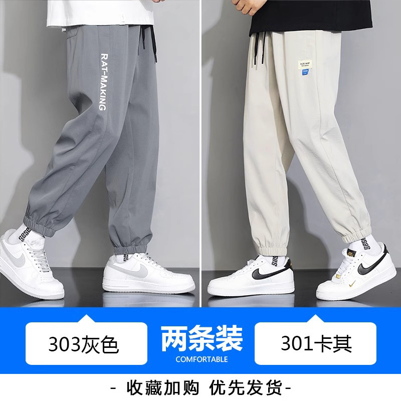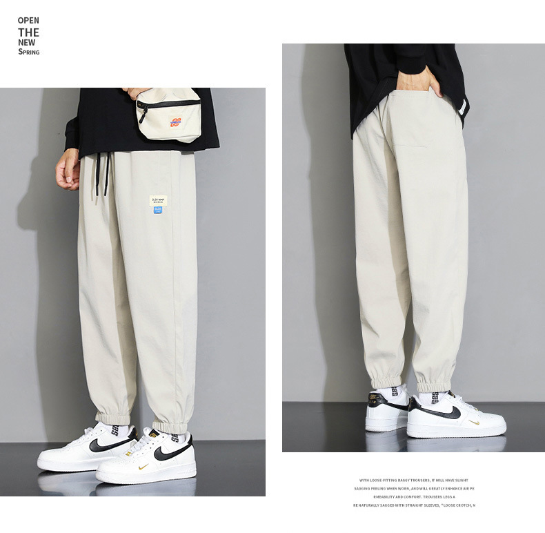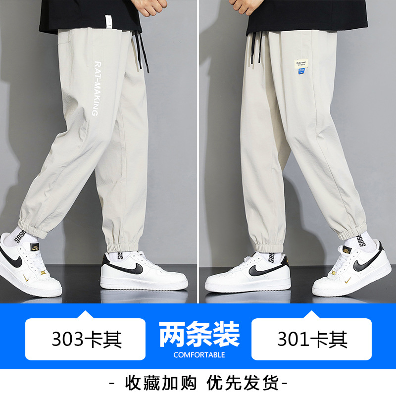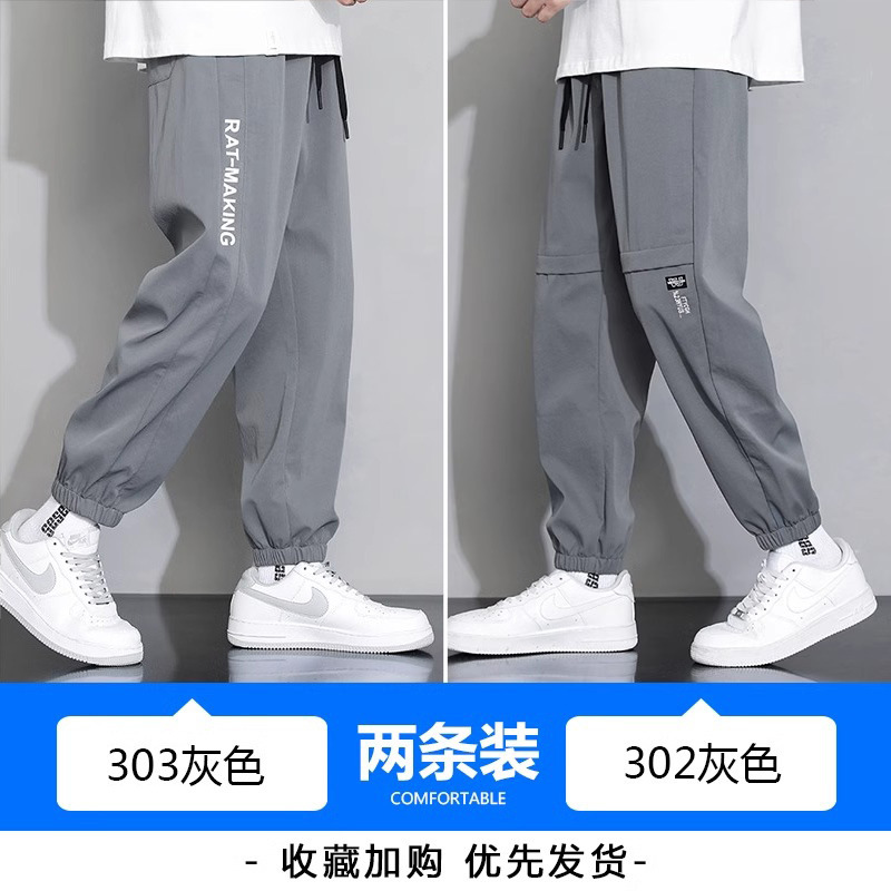 NASA 아이스 실크 캐주얼 바지 남자 여름 얇은 빠른 건조 스포츠 느슨한 다리 여름 유행 남자 자른 바지스토어 가기