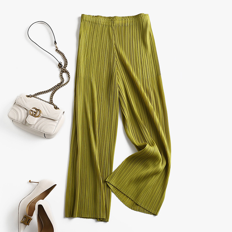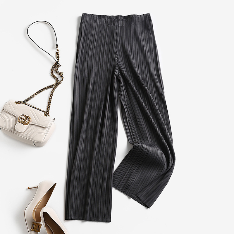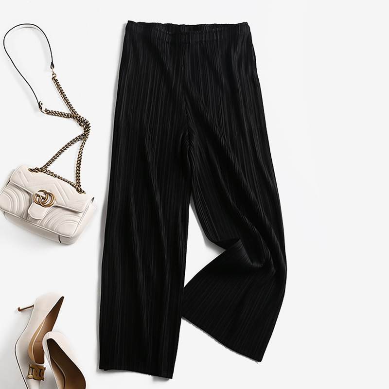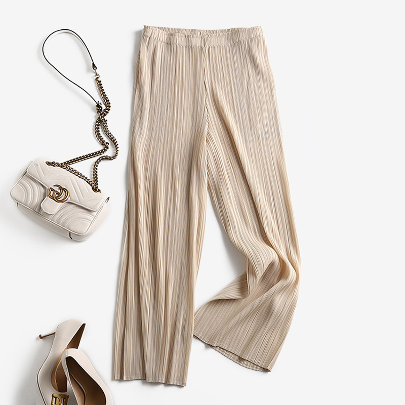 벤 캐비닛 목록, 디자이너! 실크 매달린 비 다림질 ~ 틈새 예술 주름 높은 허리 캐주얼 크롭 넓은 다리 바지스토어 가기