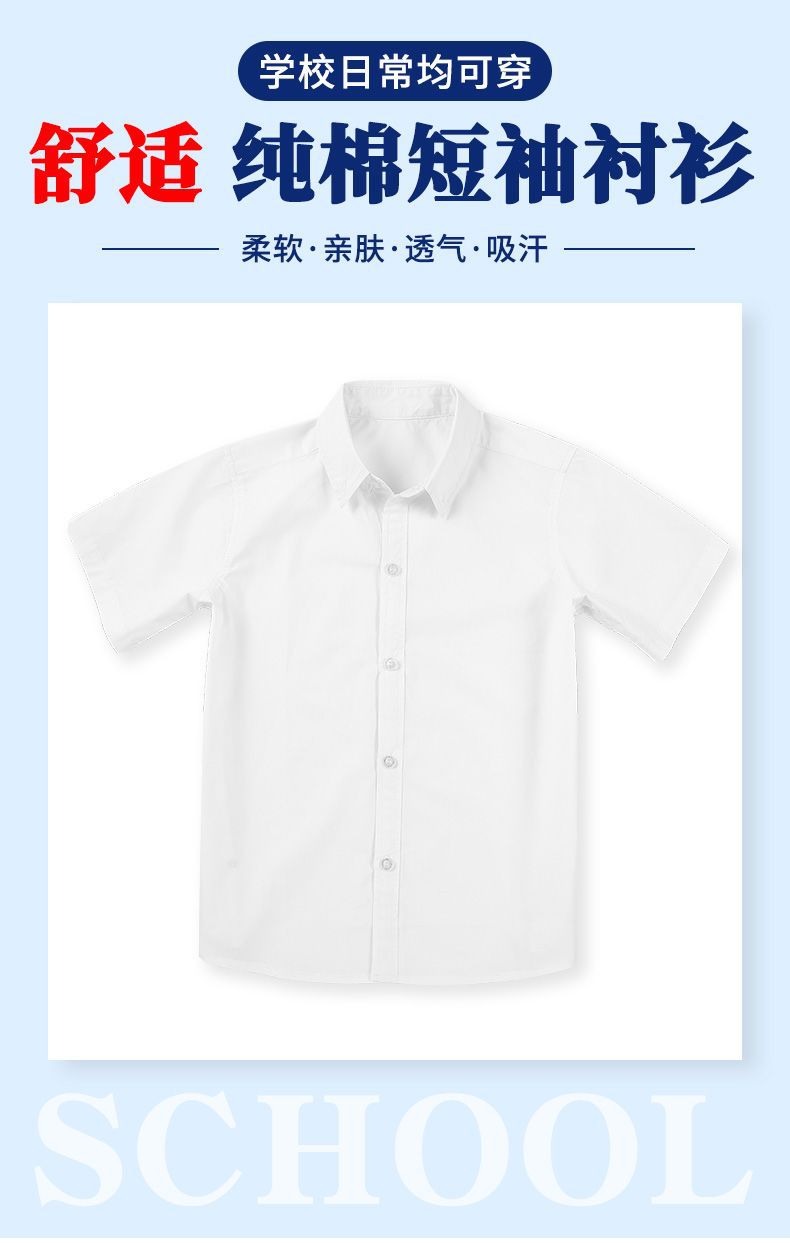 소년 반팔 흰 셔츠 초등학생을위한 어린이 흰색 셔츠 교복 순수 면화 원피스 소년 여름 큰 아이들 여름 남자스토어 가기