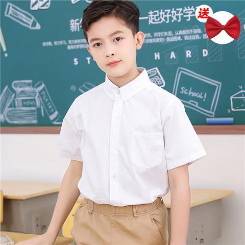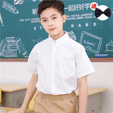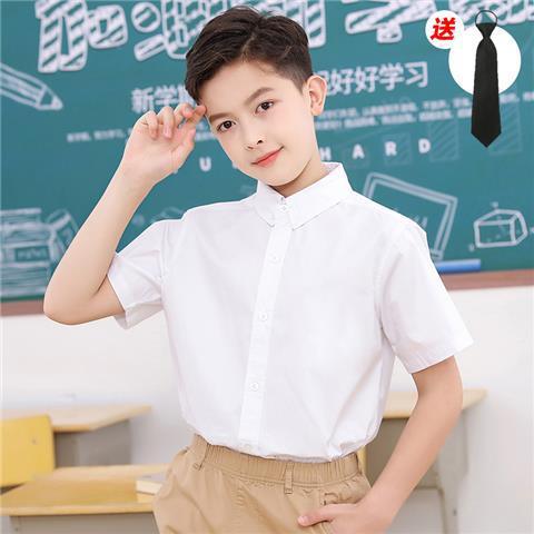 소년 반팔 흰 셔츠 초등학생을위한 어린이 흰색 셔츠 교복 순수 면화 원피스 소년 여름 큰 아이들 여름 남자