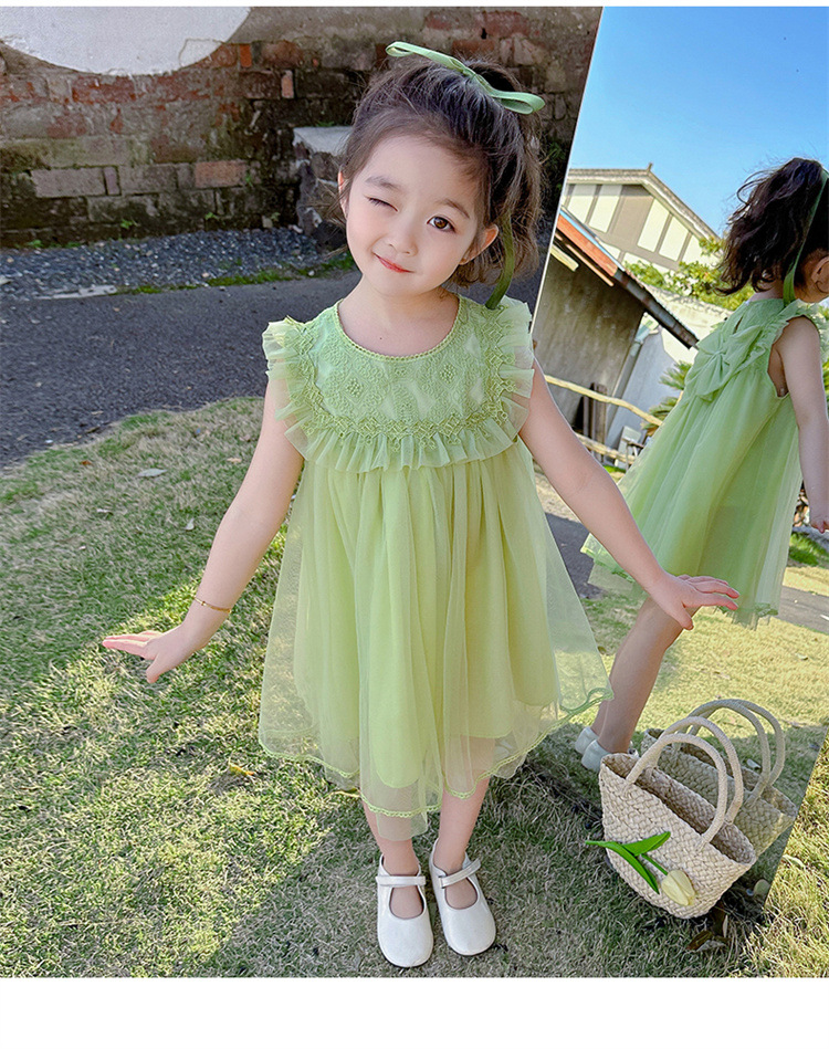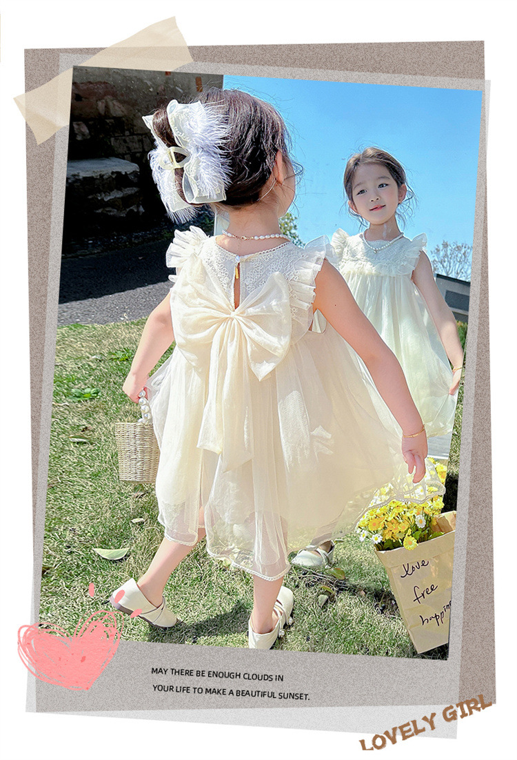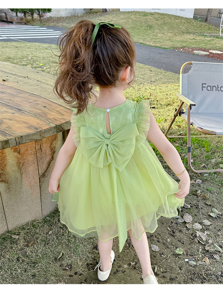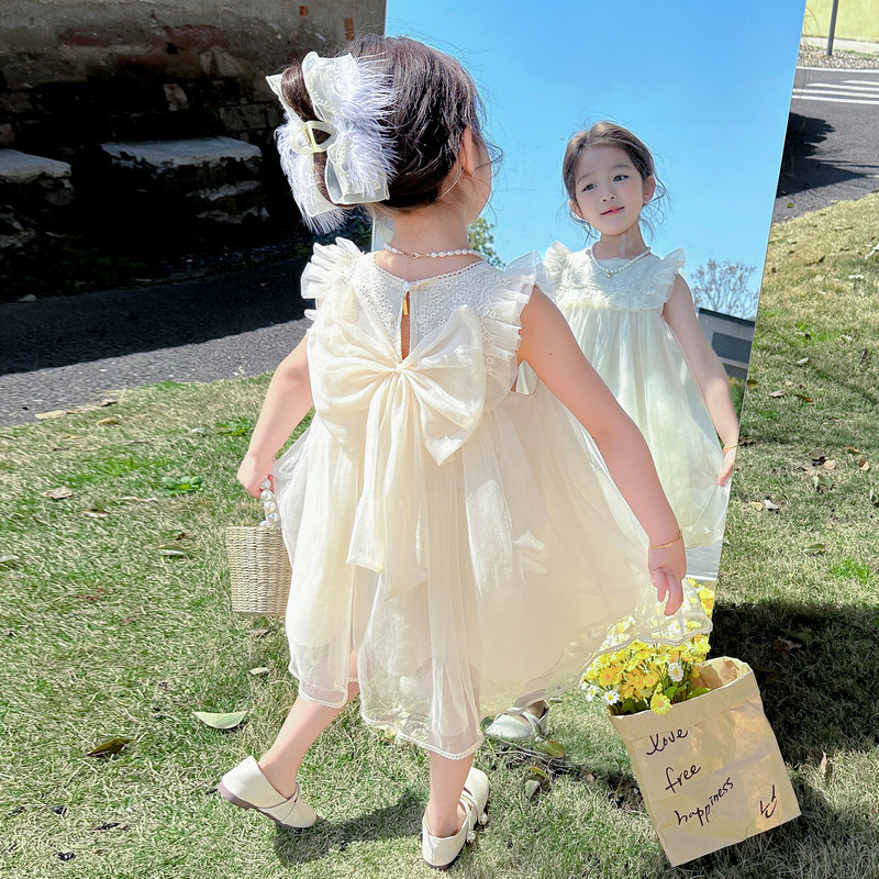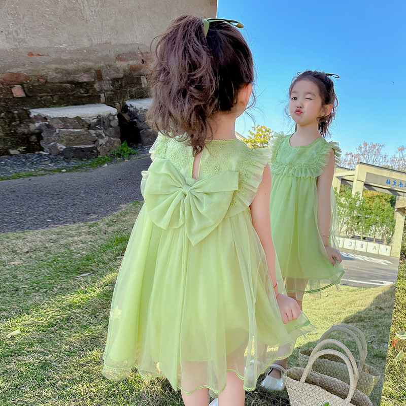 여아 2026년 여름 스타일 리본 장식 아동 원피스, 드롭쉬핑, 어린이날 공연복, 인터넷 유명 트렌드 면 소재스토어 가기