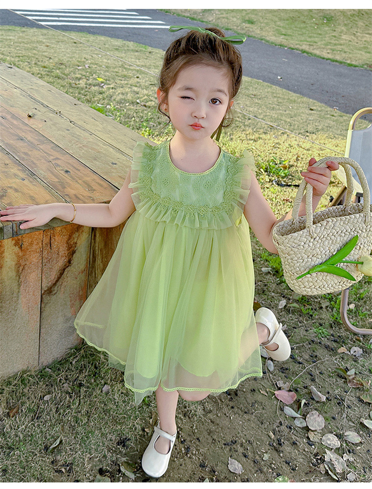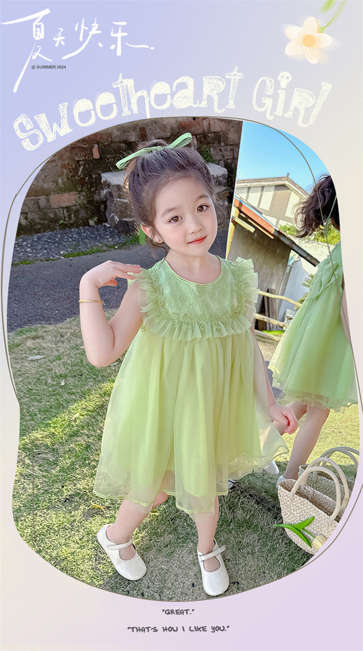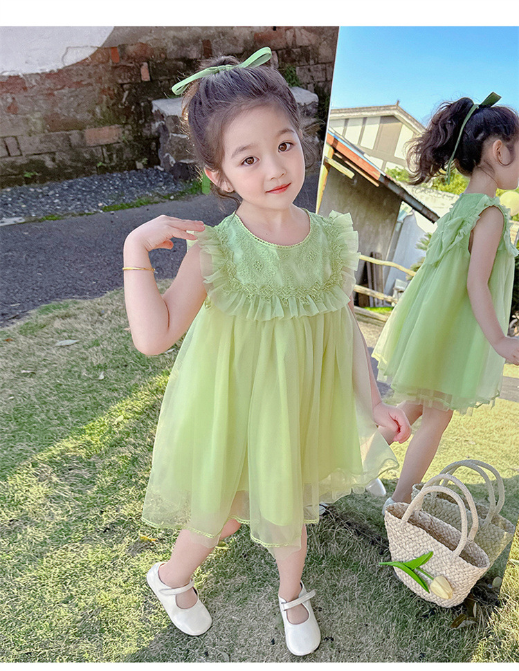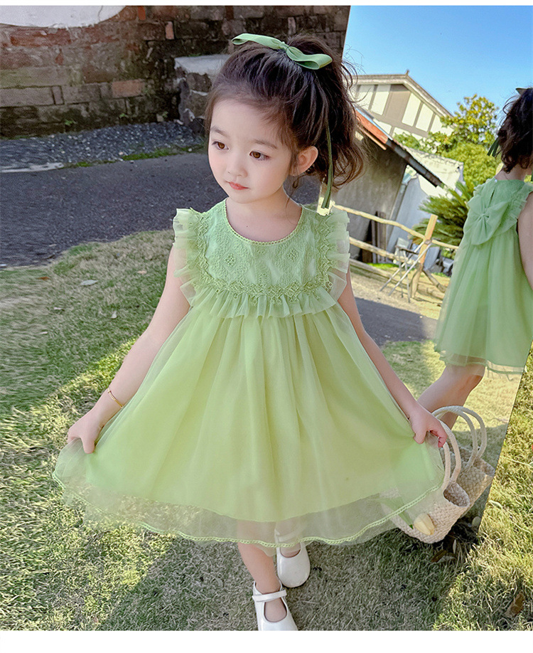 여아 2026년 여름 스타일 리본 장식 아동 원피스, 드롭쉬핑, 어린이날 공연복, 인터넷 유명 트렌드 면 소재스토어 가기