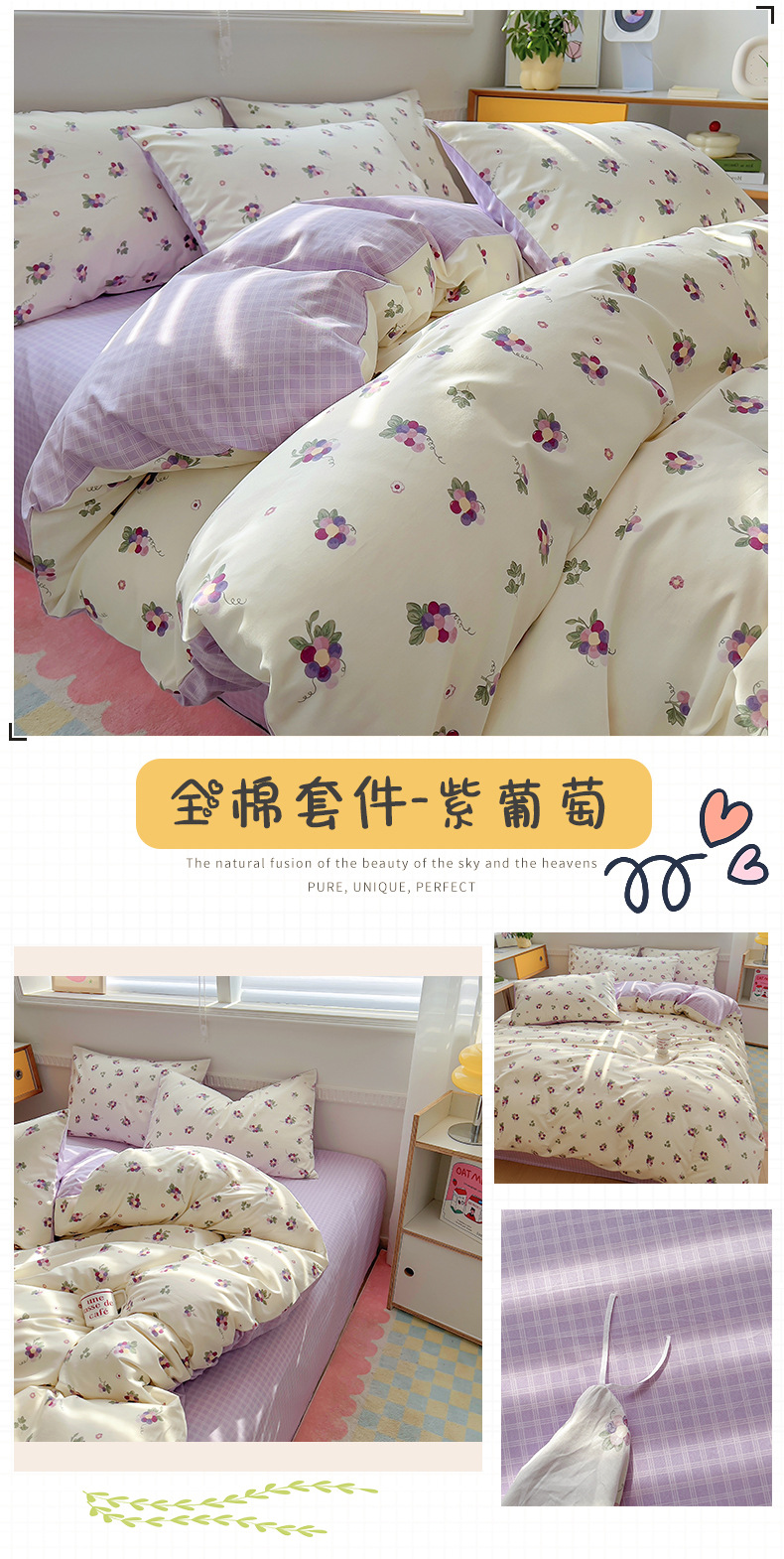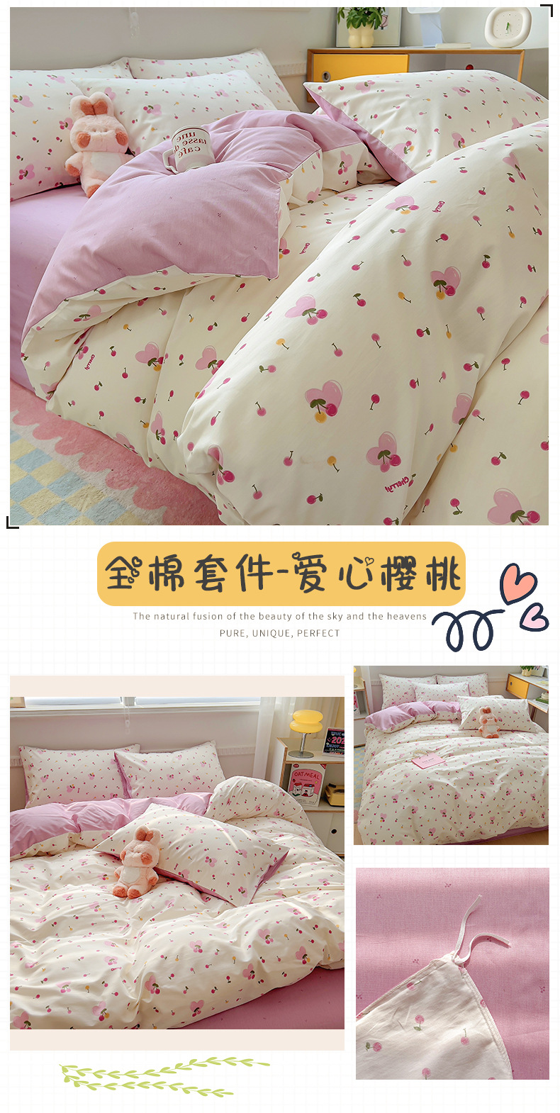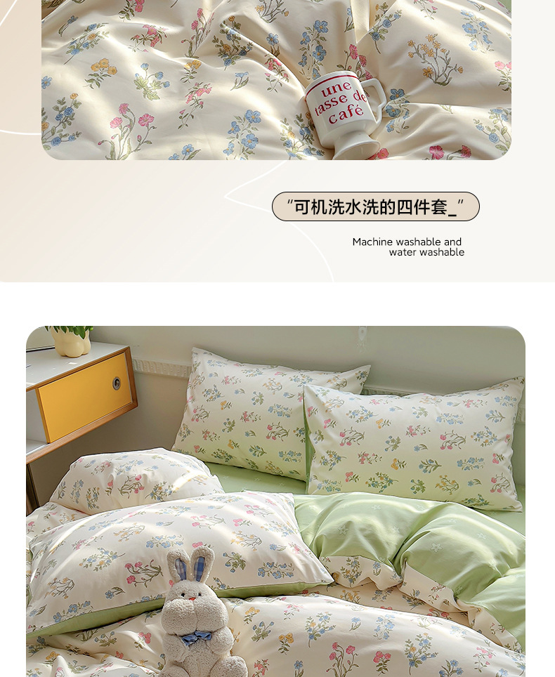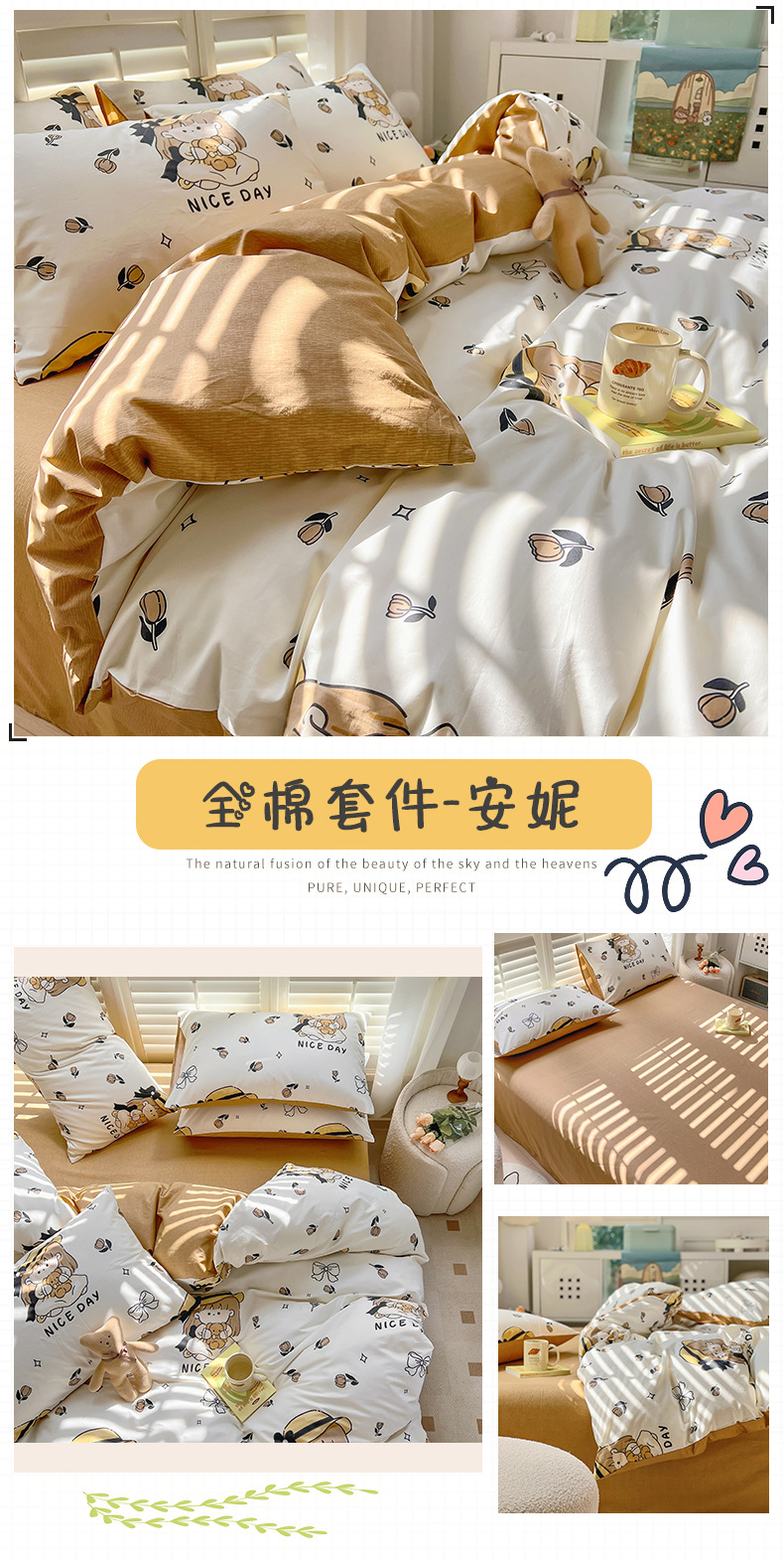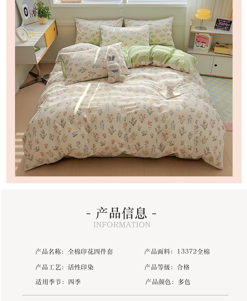 사계절 유니버설 플로랄 클래스 A 면 신선한 스타일 만화 프랑스 기계 세탁기 럭셔리 소프트 침대 4 피스 퓨어 코튼스토어 가기