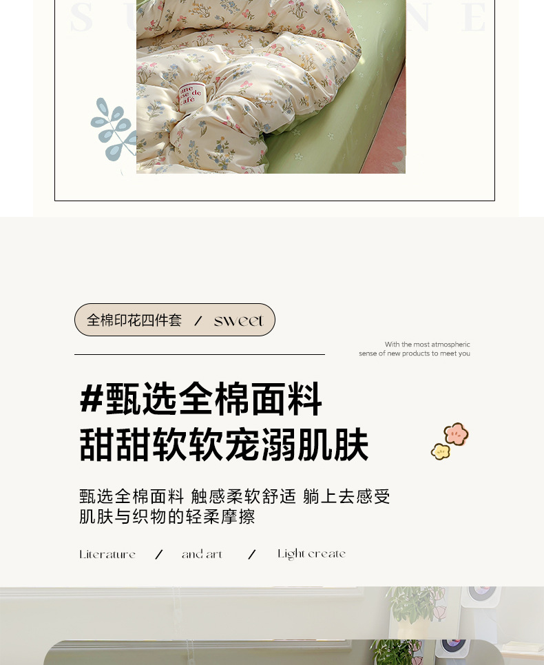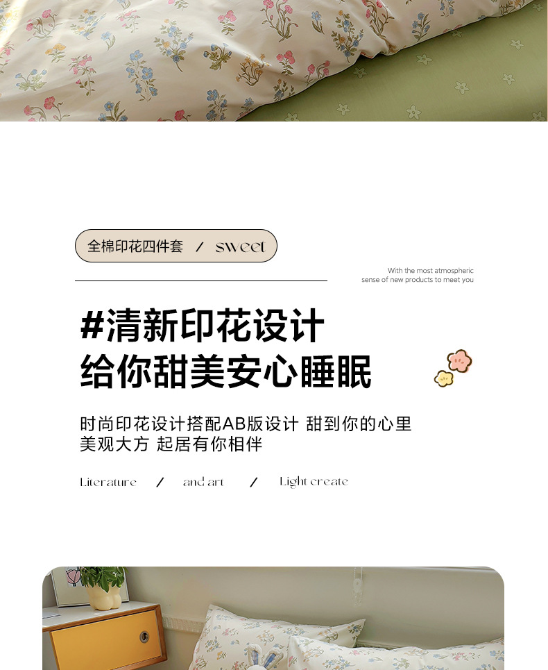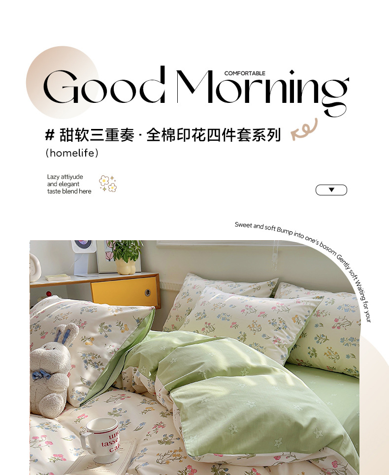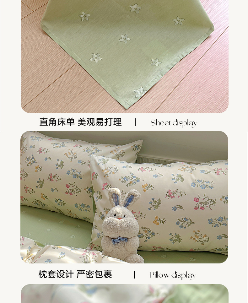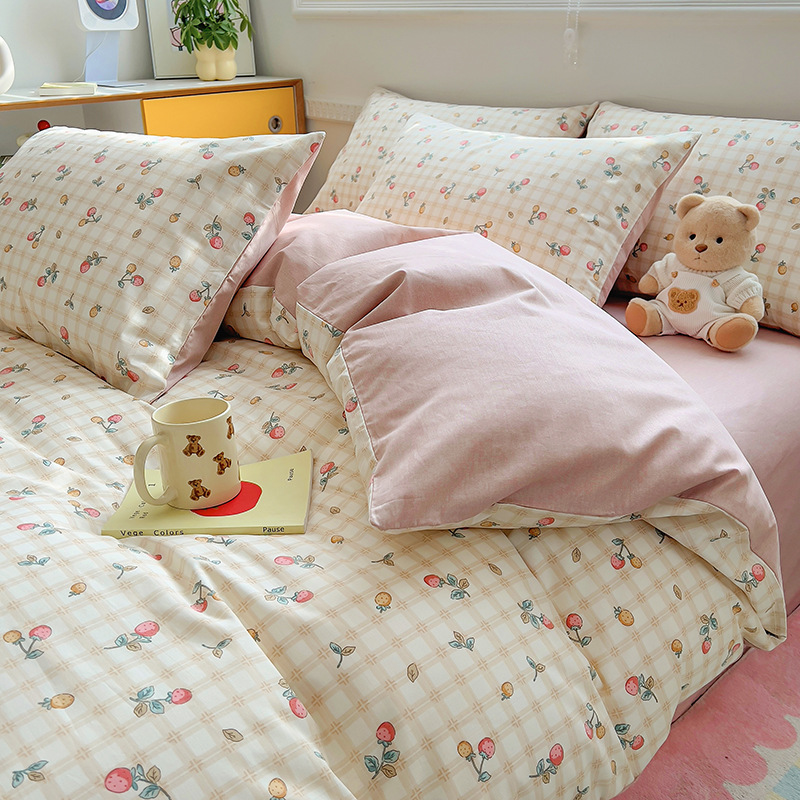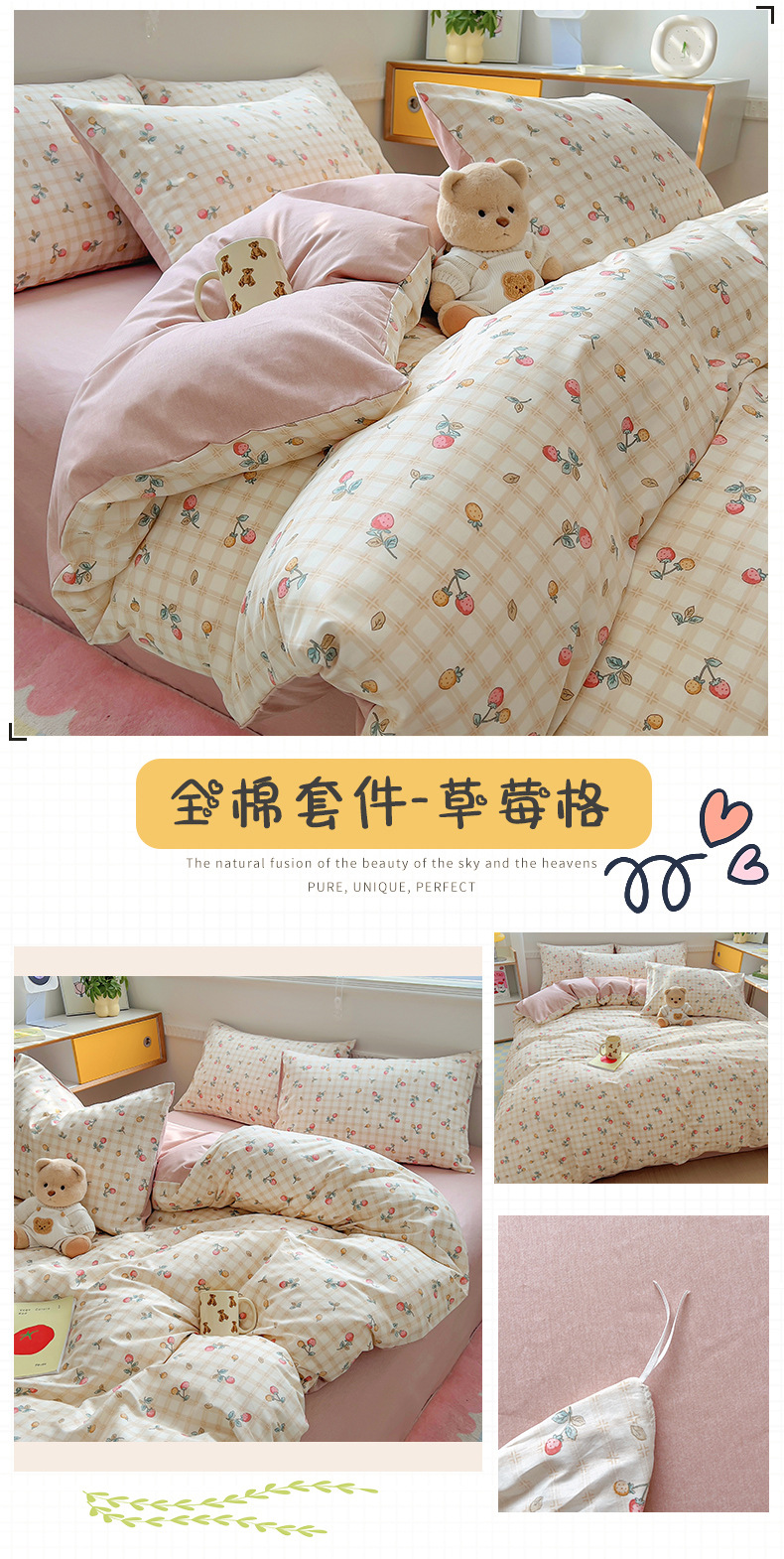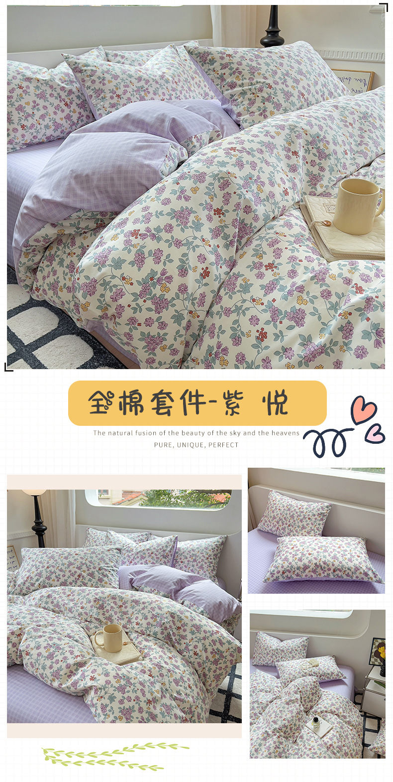 사계절 유니버설 플로랄 클래스 A 면 신선한 스타일 만화 프랑스 기계 세탁기 럭셔리 소프트 침대 4 피스 퓨어 코튼스토어 가기