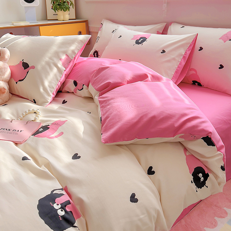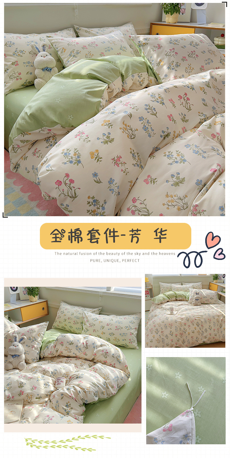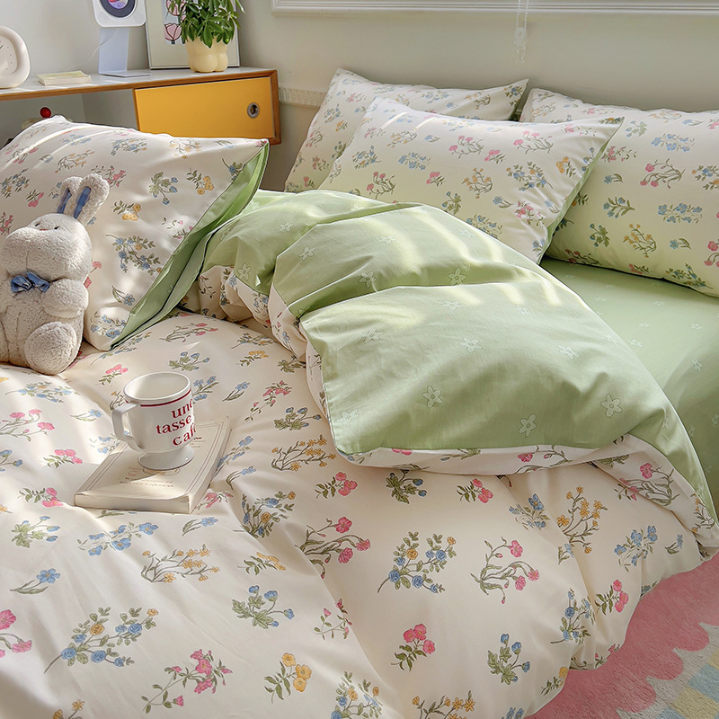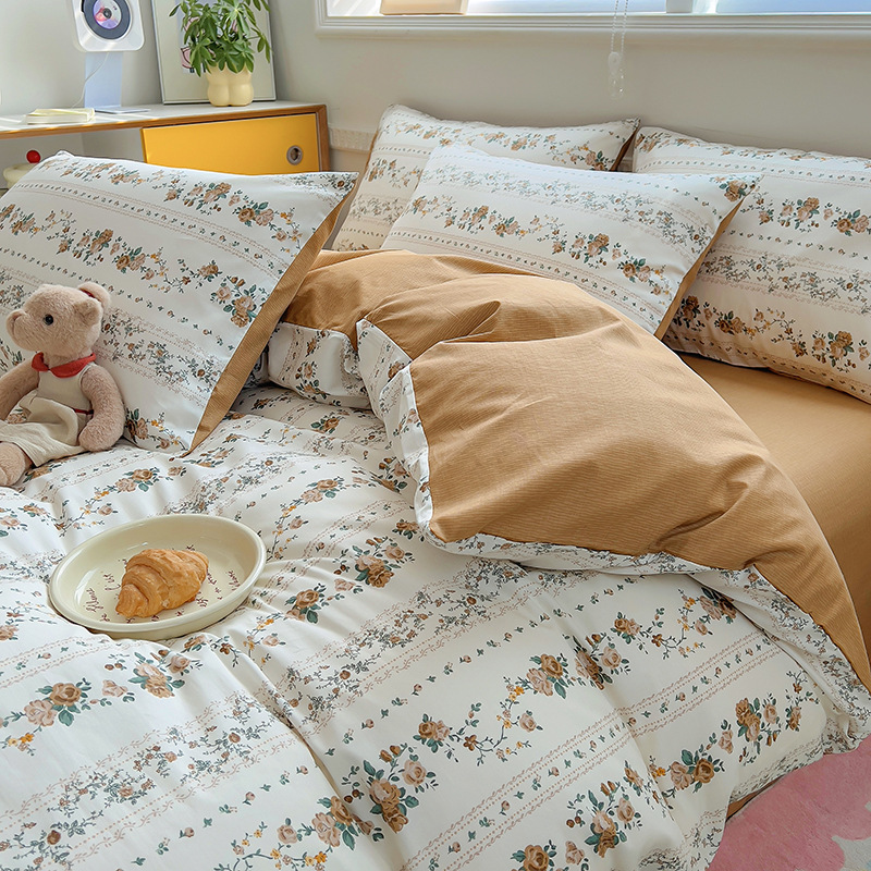 사계절 유니버설 플로랄 클래스 A 면 신선한 스타일 만화 프랑스 기계 세탁기 럭셔리 소프트 침대 4 피스 퓨어 코튼