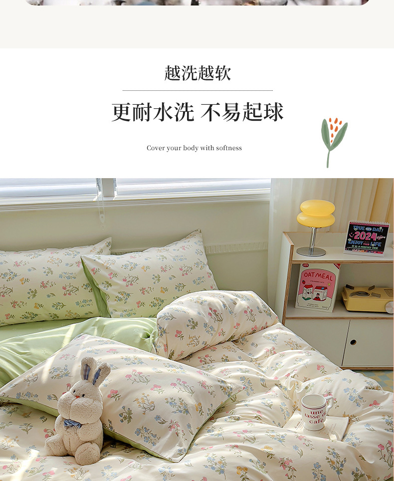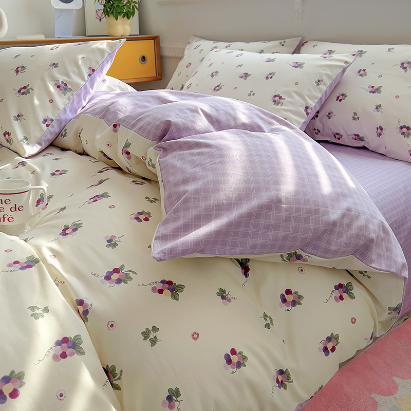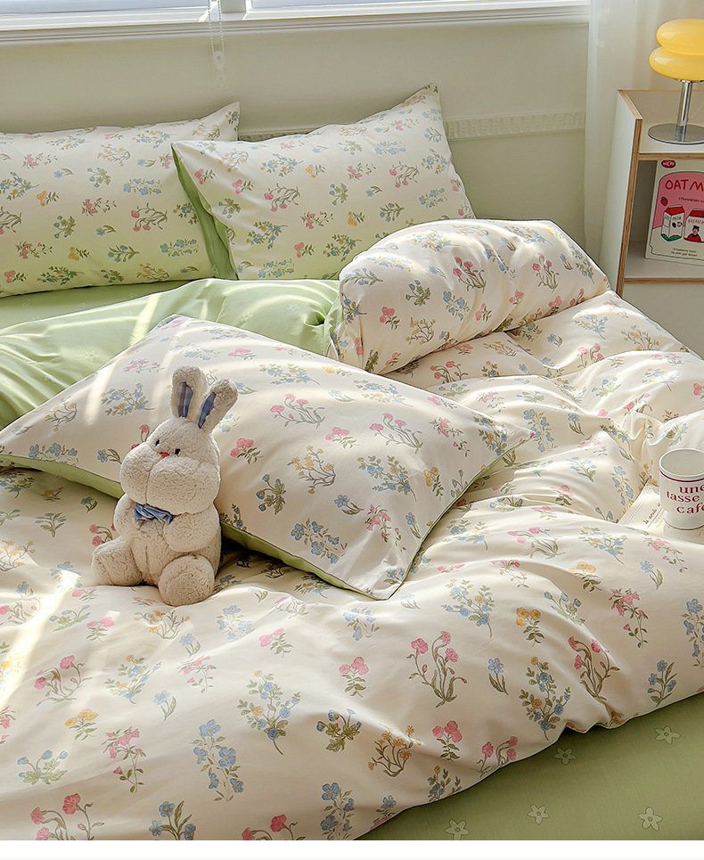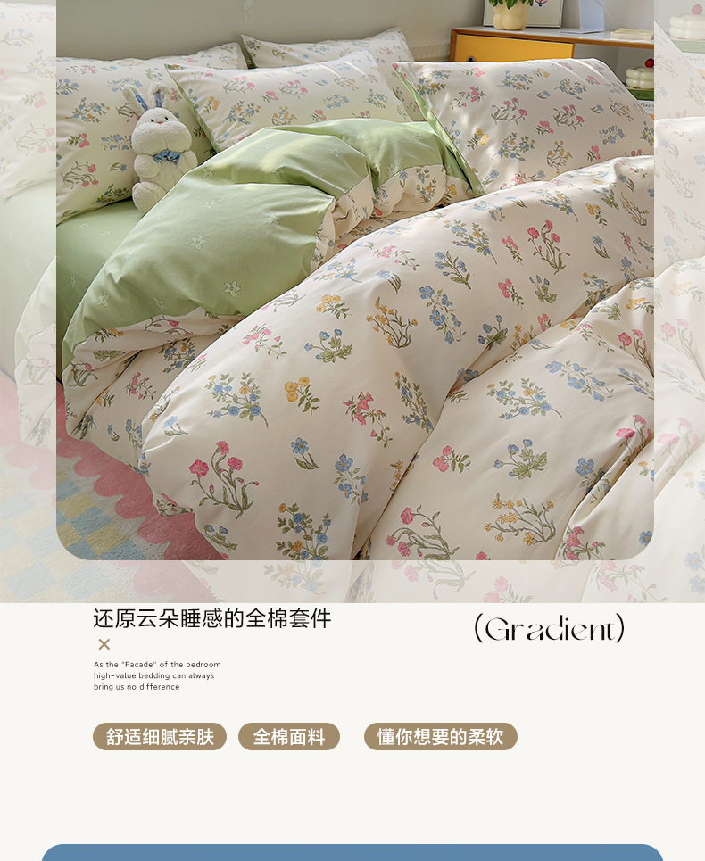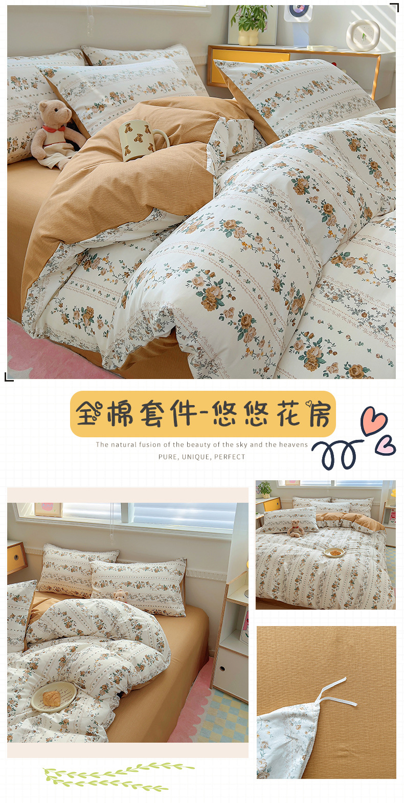 사계절 유니버설 플로랄 클래스 A 면 신선한 스타일 만화 프랑스 기계 세탁기 럭셔리 소프트 침대 4 피스 퓨어 코튼