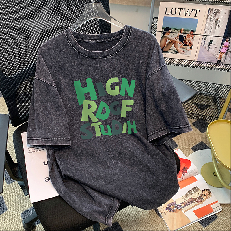 아메리칸 스타일 하이 스트리트 반팔 남녀 트렌디 브랜드 티셔츠 올드 코튼 한국 오버 사이즈 여름 반소매 탑