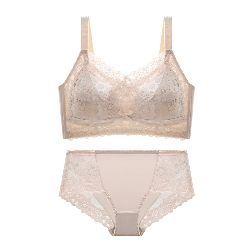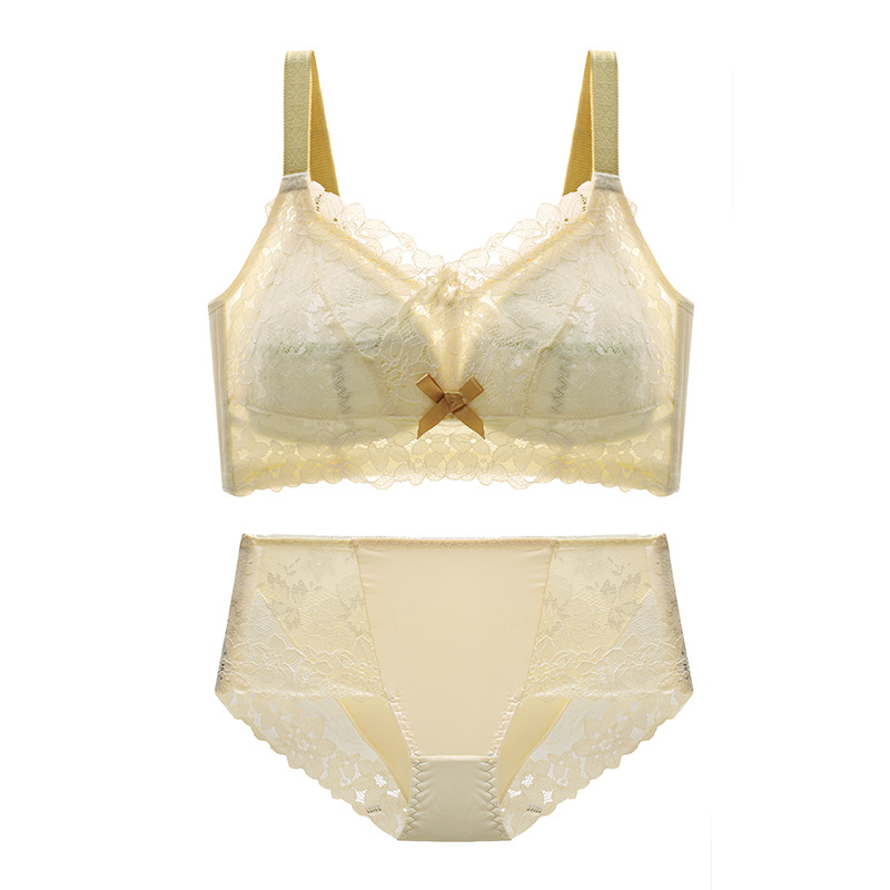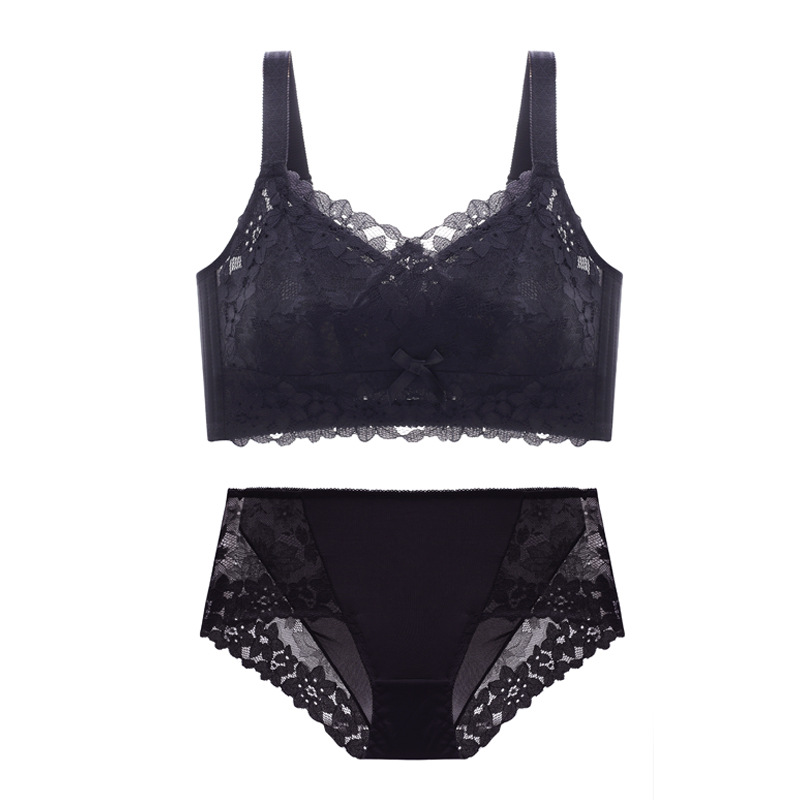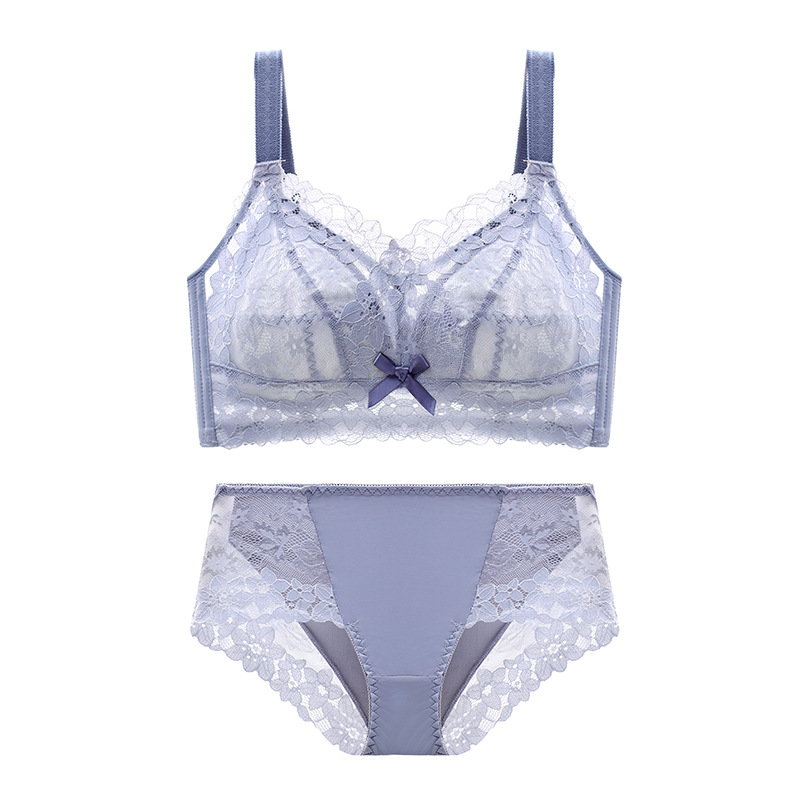 여름 초박형 대형 가슴 작은 속옷 여성용 얇은 무테 브라 처짐 방지 플러스 사이즈 브라 세트