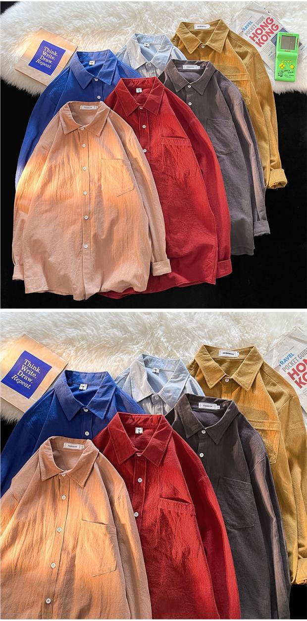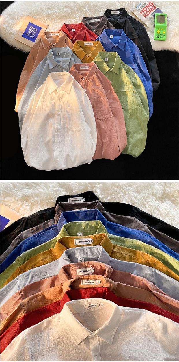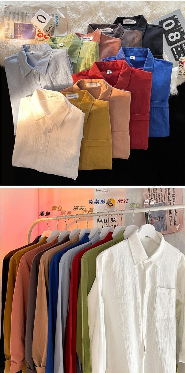 리넨 셔츠 남성용 긴팔 느슨한 캐주얼 봄과 가을 얇은 내부 재킷 남성용 패션 의류 면 및 리넨 셔츠스토어 가기