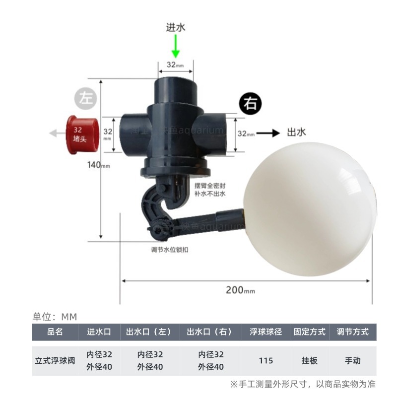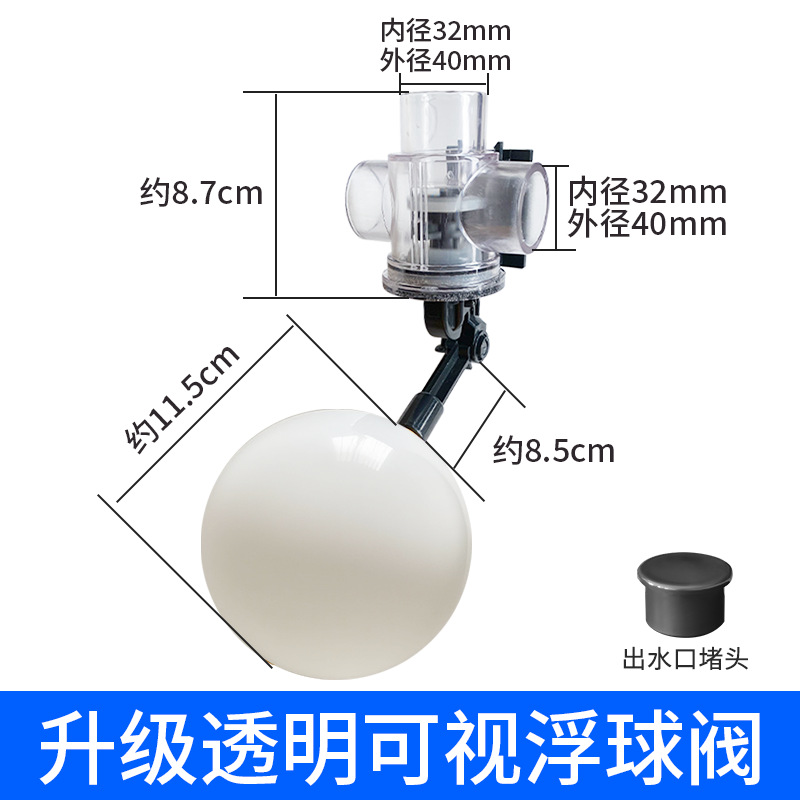 대유량 무압력 플로트 밸브 어항 바닥 여과 수조 플라스틱 급수 밸브 조절 가능한 수위 스위치 32 어류 연못