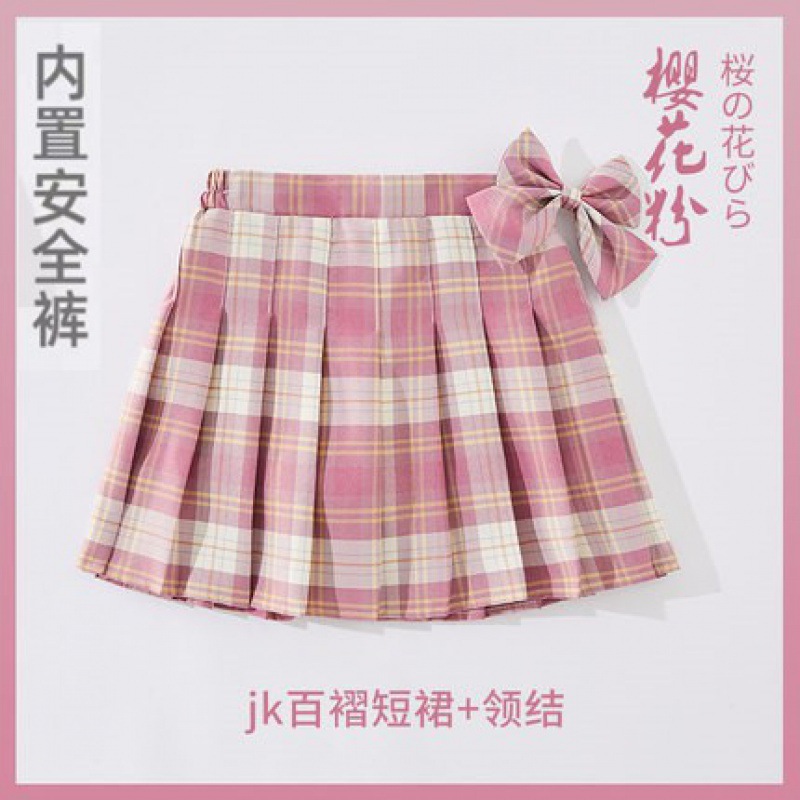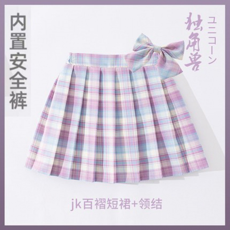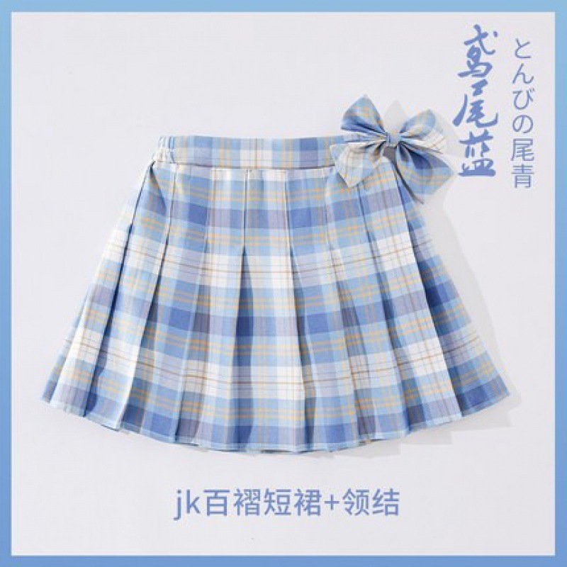 • 블루 체크 스커트(노출 방지) + 프리 보타이