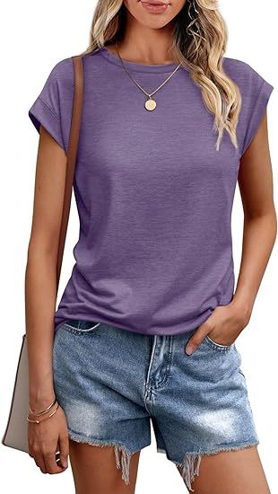 아마존 2025 유럽 및 미국 여성용 조끼 여름 크로스보더 라운드넥 반팔 티셔츠 단색 라운드넥 커버 슬리브 수출용 여성복스토어 가기