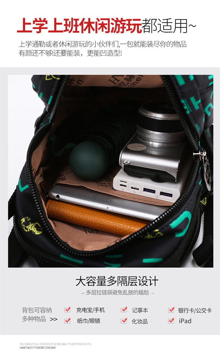 한 팩 다목적 새로운 스타일 간단한 대용량 어깨 가방 크로스 바디 가방 다기능 모든 매치 가슴 가방 인쇄 배낭 여성