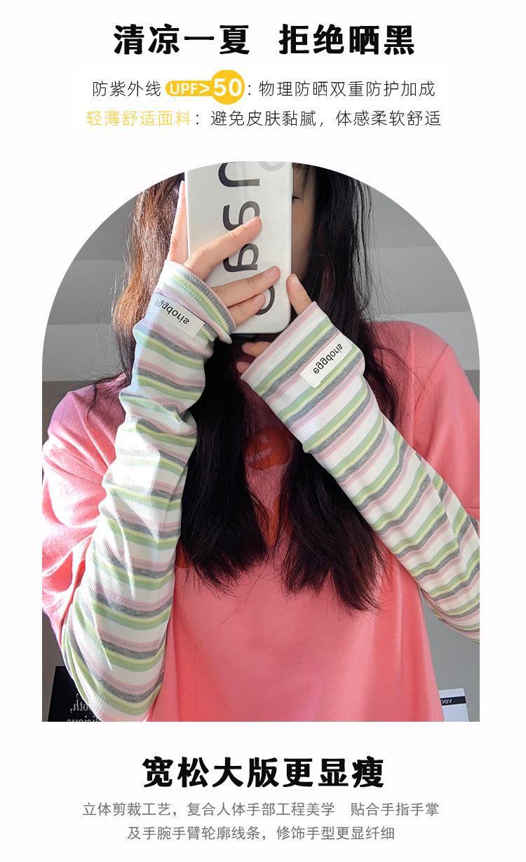 줄무늬 선스크린 소매 여성의 여름 얇은 통기성 UV 저항하는 느슨한 얼음 소매 야외 운전 승마 팔 보호