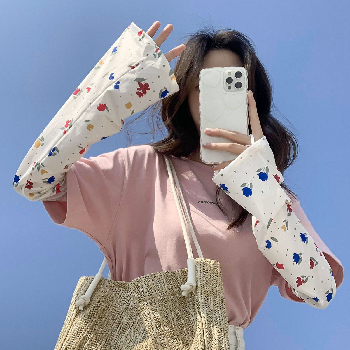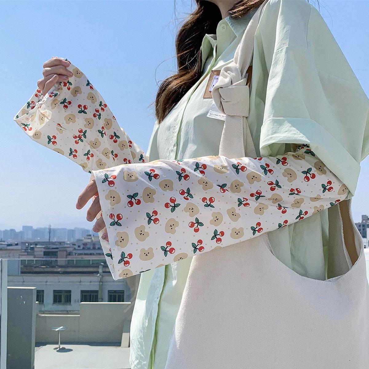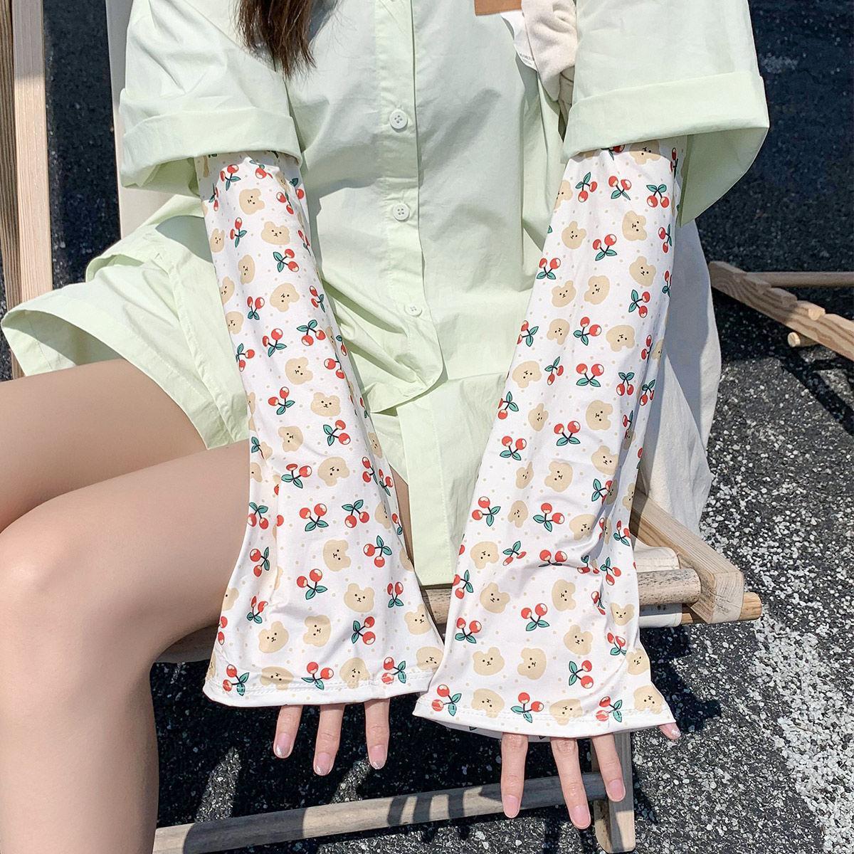 여름 태양 보호 소매 체리 느슨한 아이스 실크 아이스 소매 여성의 운전 UV 보호 슬리브 소매 장갑 손 소매스토어 가기