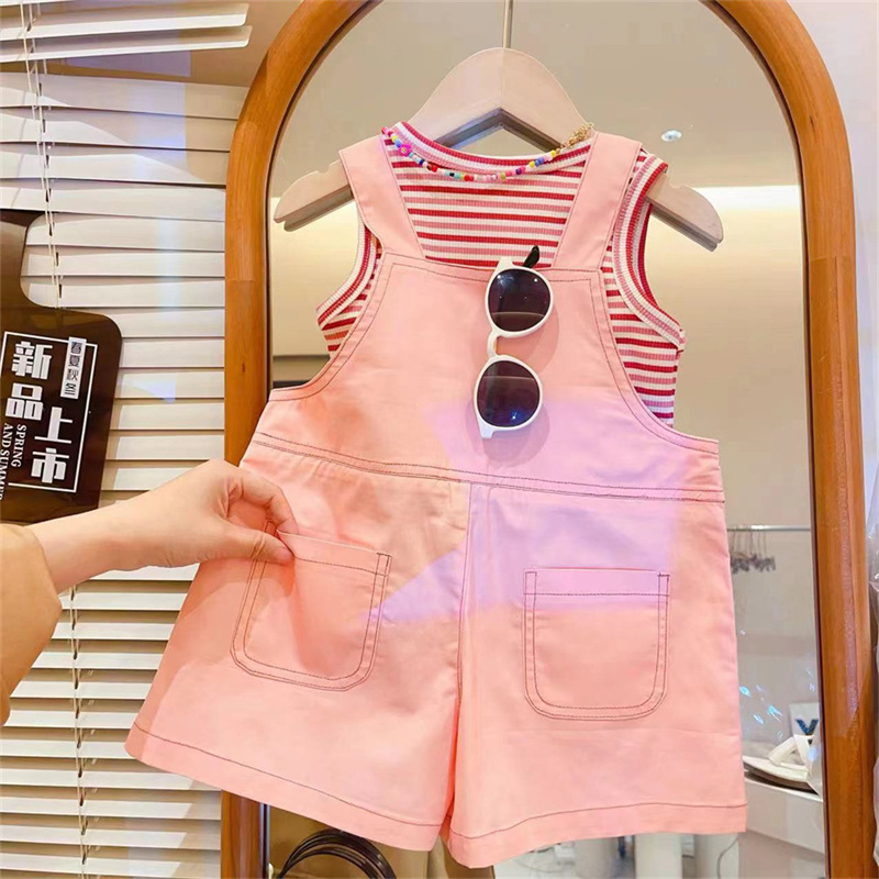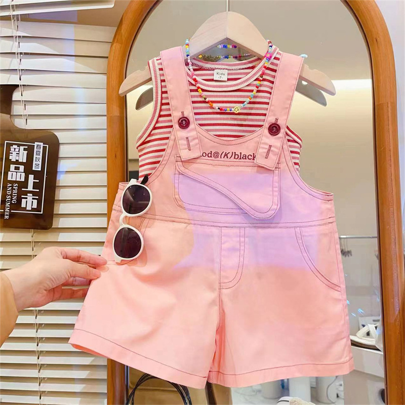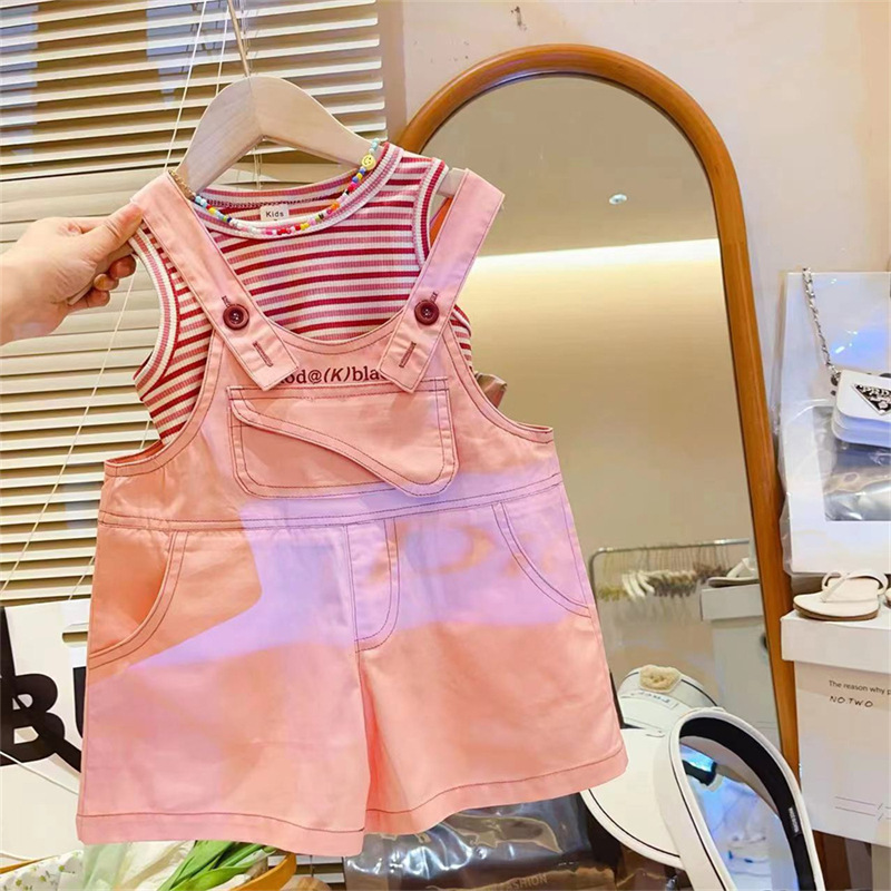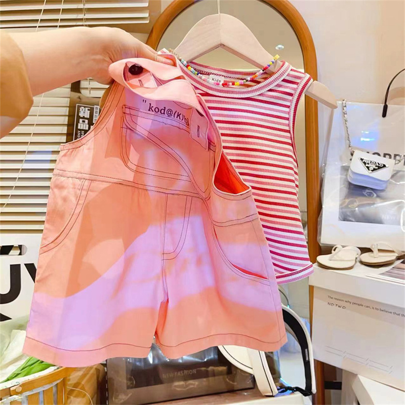 소녀 공 세트 어린이 2024 새로운 캐주얼 여름 착용 얇은 아기 세련된 유행 조끼 투피스 세트스토어 가기