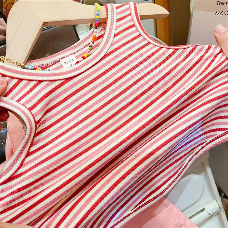 소녀 공 세트 어린이 2024 새로운 캐주얼 여름 착용 얇은 아기 세련된 유행 조끼 투피스 세트