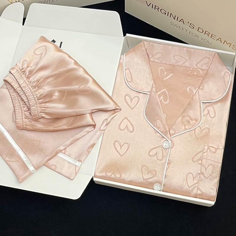 프랑스 잠옷 여성의 여름 2024 새로운 소녀 인쇄 반팔 하이 엔드 아이스 실크 반바지 홈 의류 세트
