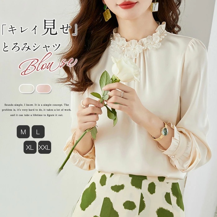 봄 일본과 한국의 새로운 스타일 디자인 센스 혼 슬리브 쉬폰 셔츠 달콤한 간단한 숙녀 봄과 가을 올 매치 탑