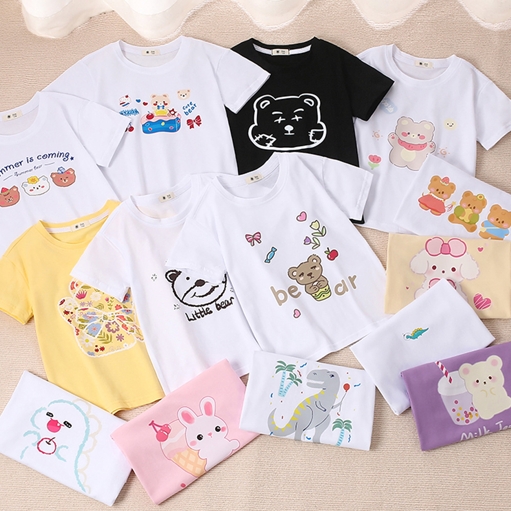 여자 반팔 티셔츠 여름 아동복 톱 보이즈 올 매치 뉴 루즈 코튼 어린이 티셔츠 여름 옷스토어 가기