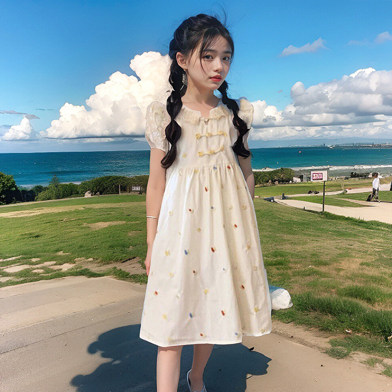 여아 여름 원피스 2025 신상 중대형 어린이 순면 자수 중국풍 공주 드레스 패셔너블한 원피스