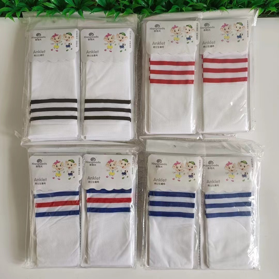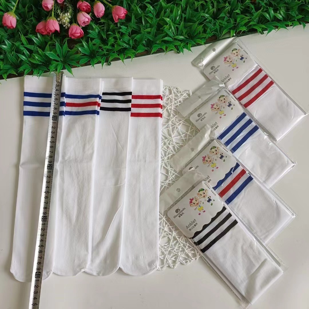 세 줄무늬 아동용 하이삭스, 여아 교복용 중목삭스, 축구삭스, 학생용 흰색 롱댄스삭스