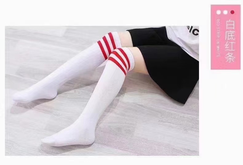 세 줄무늬 아동용 하이삭스, 여아 교복용 중목삭스, 축구삭스, 학생용 흰색 롱댄스삭스스토어 가기