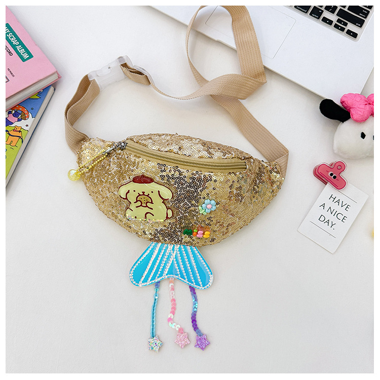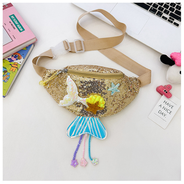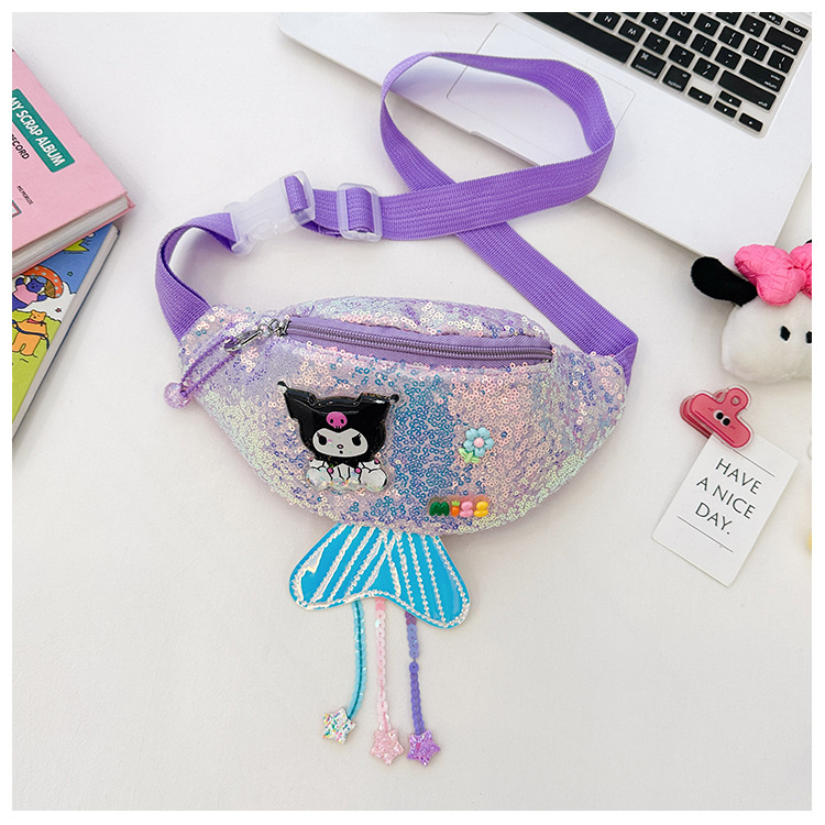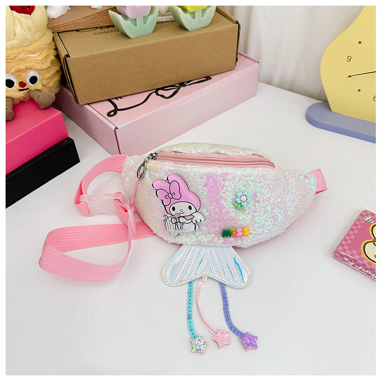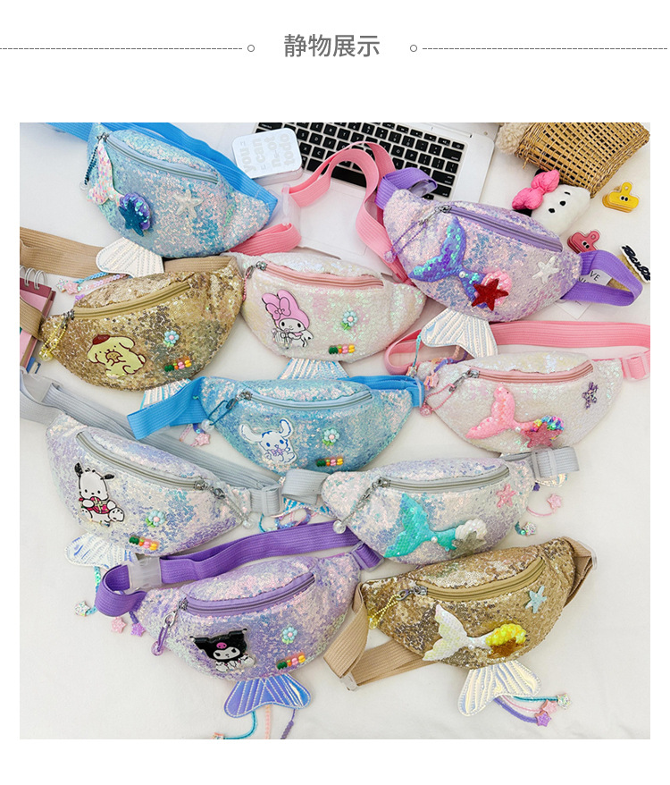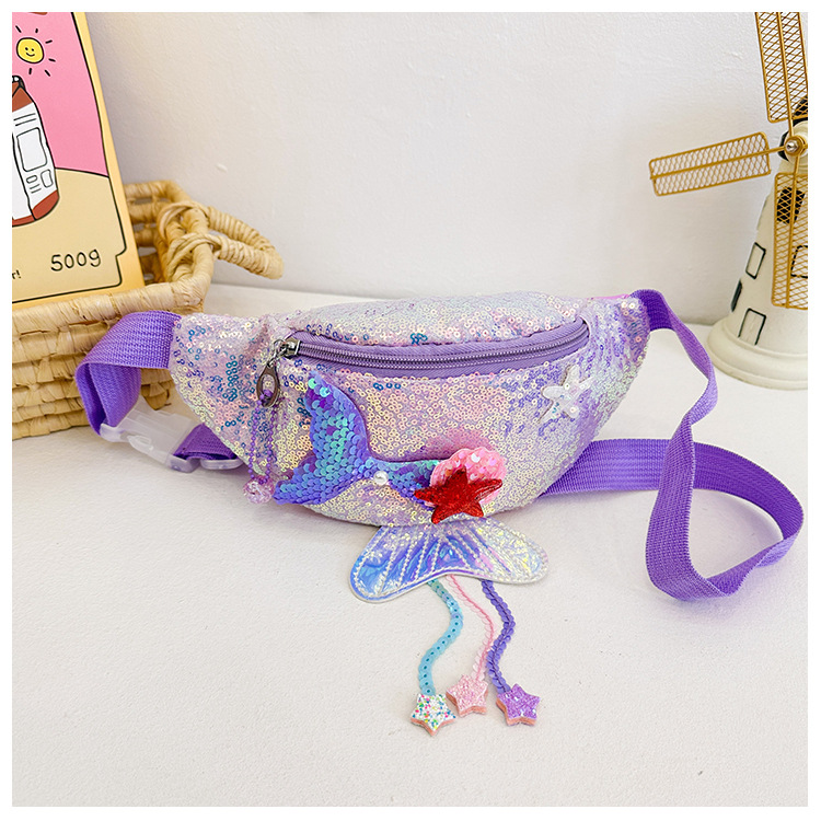 2024 어린이 크로스 바디 가슴 가방 인어 만화 귀여운 미니 허리 가방 패션 스퀸 스티칭 오브리크 여자 가방스토어 가기