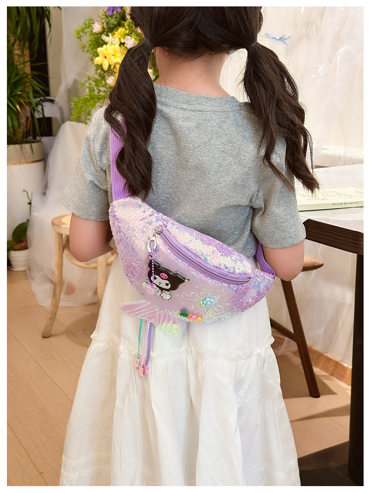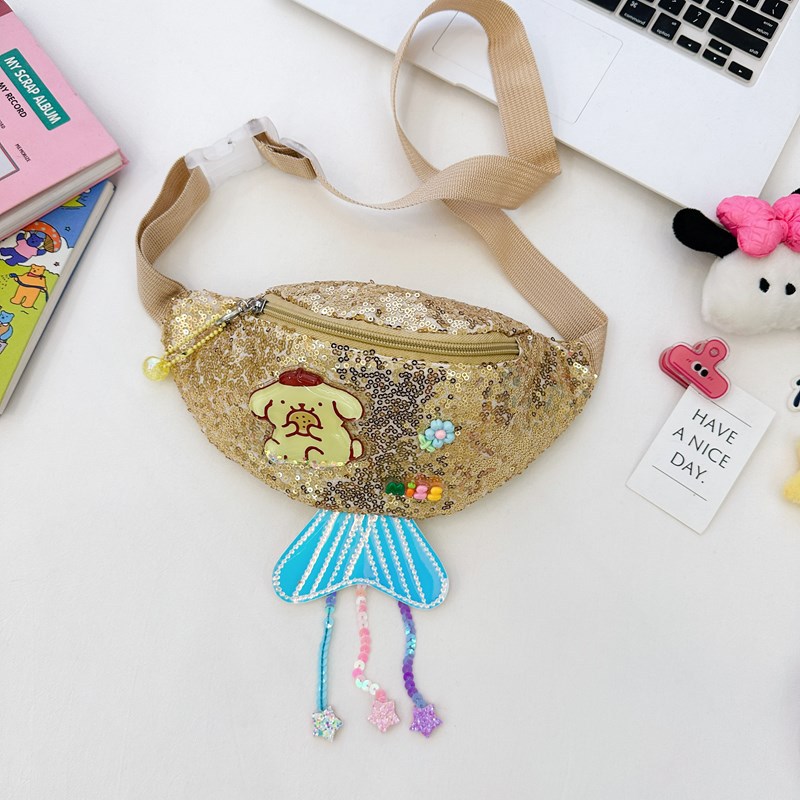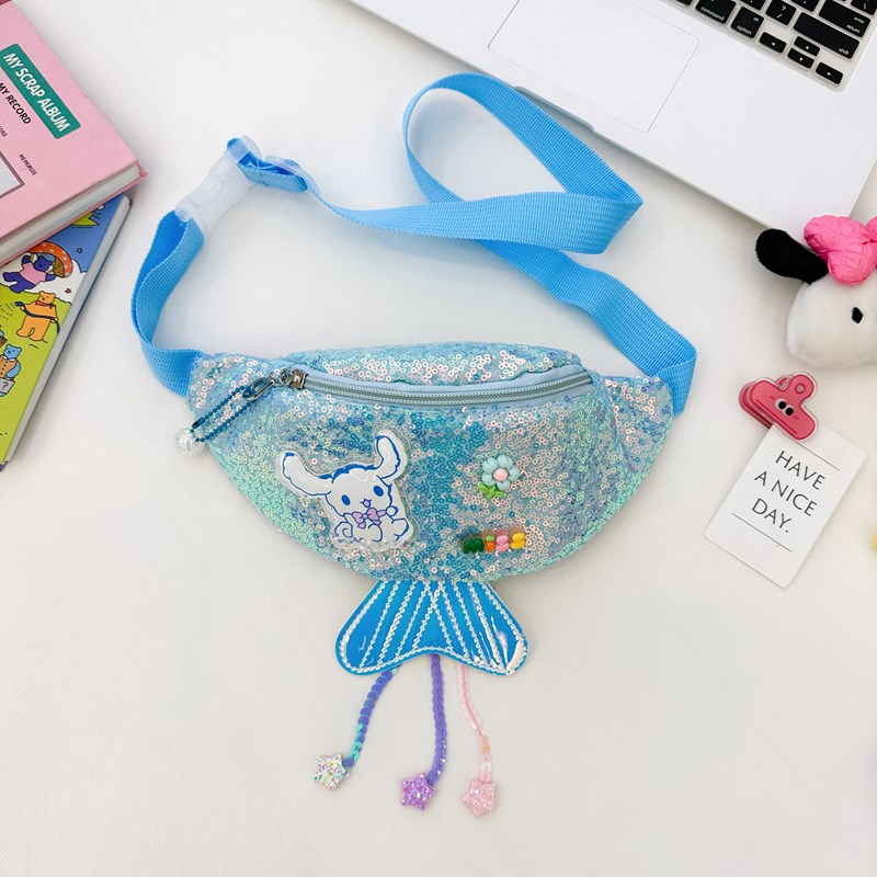 2024 어린이 크로스 바디 가슴 가방 인어 만화 귀여운 미니 허리 가방 패션 스퀸 스티칭 오브리크 여자 가방