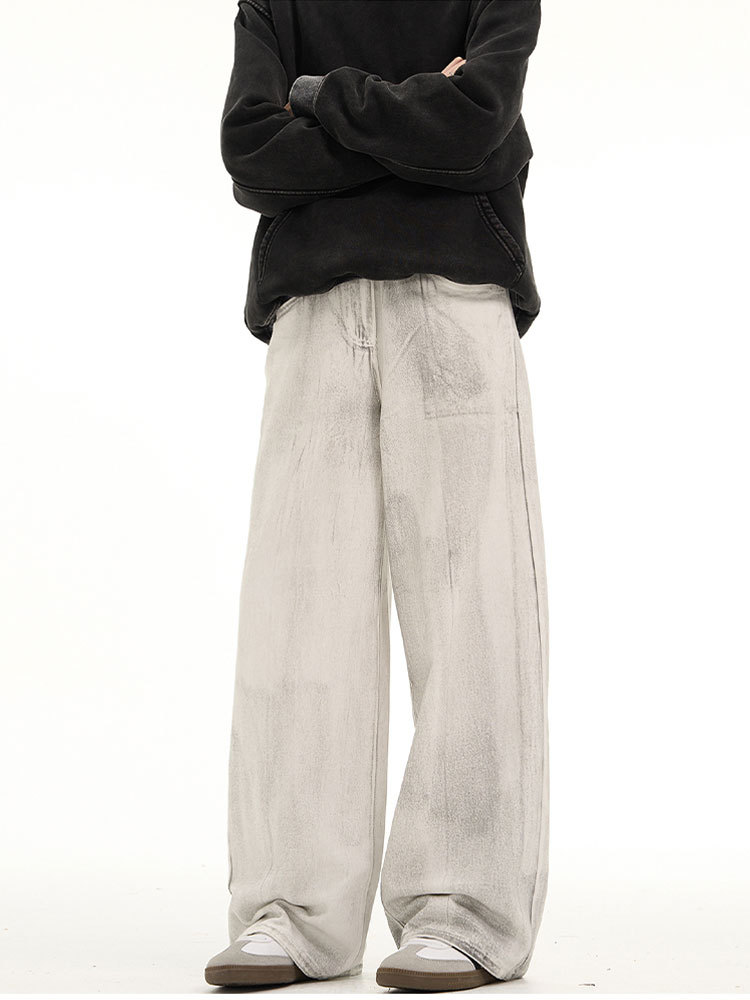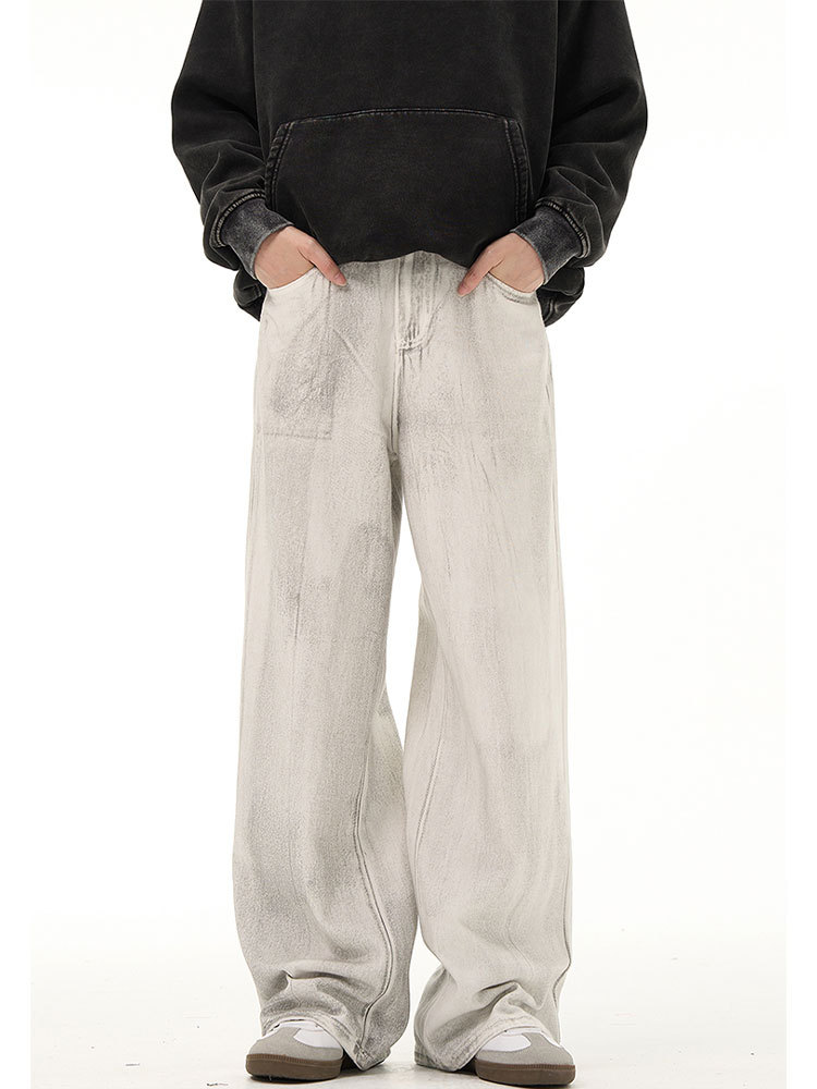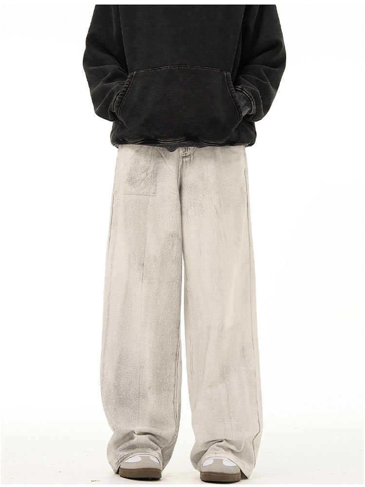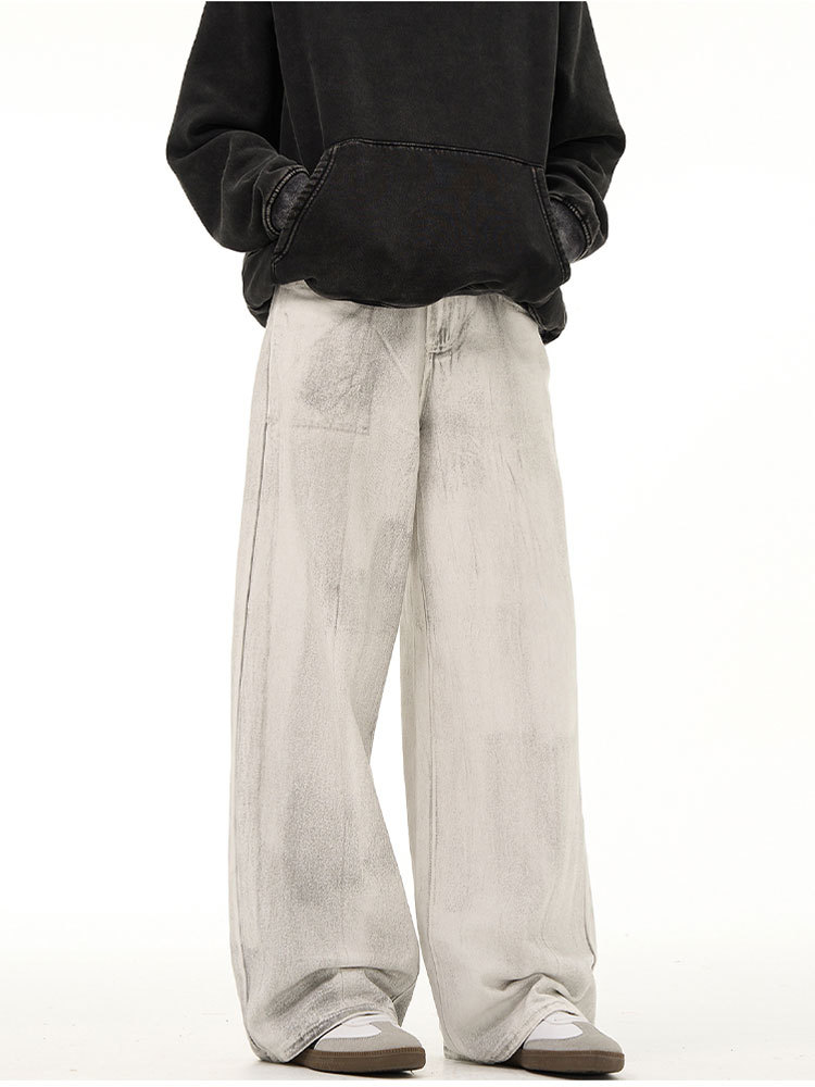 남성용 레트로 오리지널 디자인 dirtyfit 바지 미국의 새로운 스타일 국가 패션 오래 된 느슨한 딥 청바지