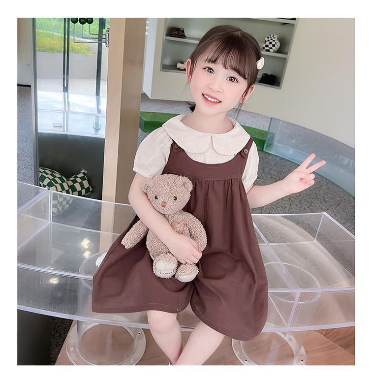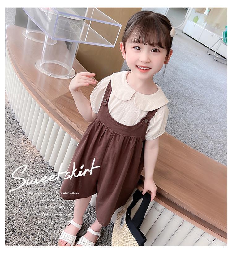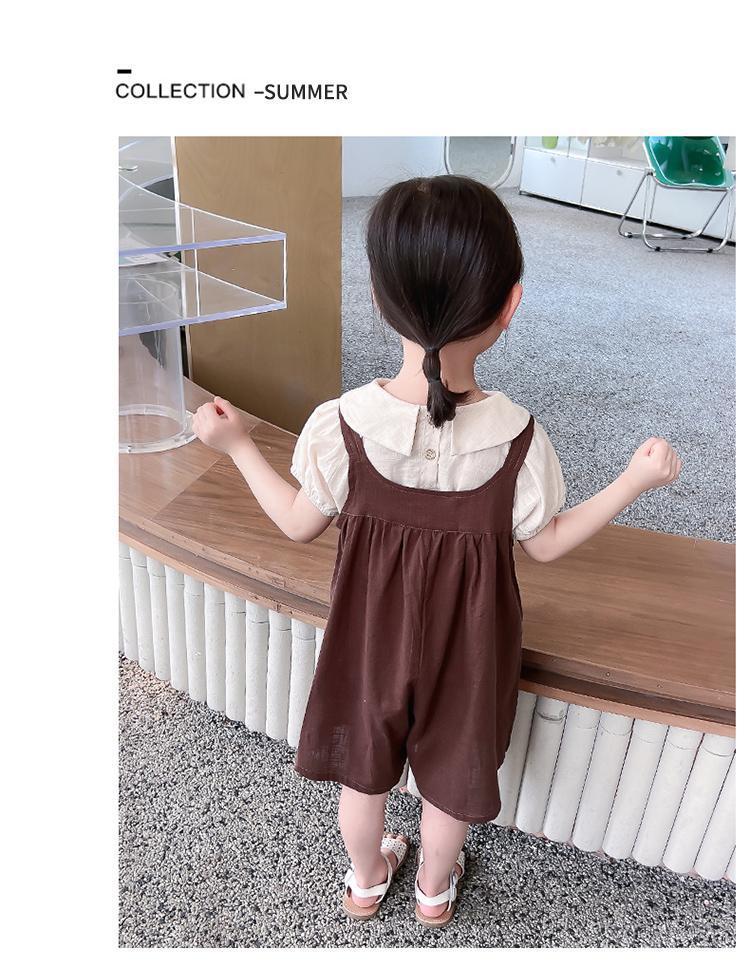 소녀의 여름 코튼 리넨 세트 2024 새로운 유행 어린이 서양식 아기 소녀의 여름 슬리브 바지 싱글 피스 세트스토어 가기