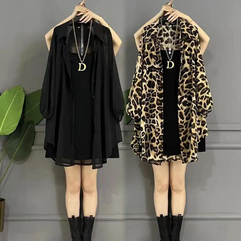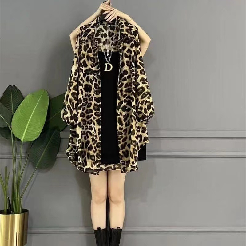 • 레오파드 무늬 원피스 두 조각 셔츠