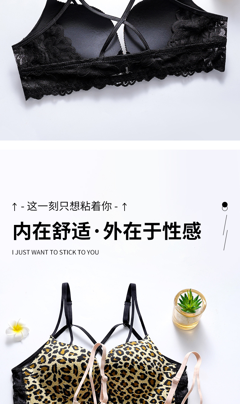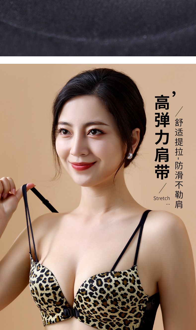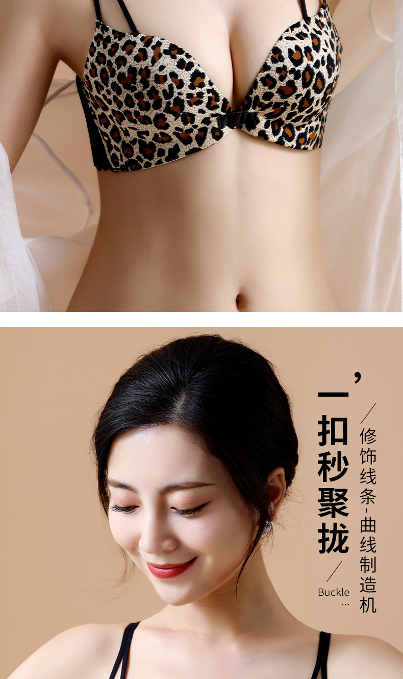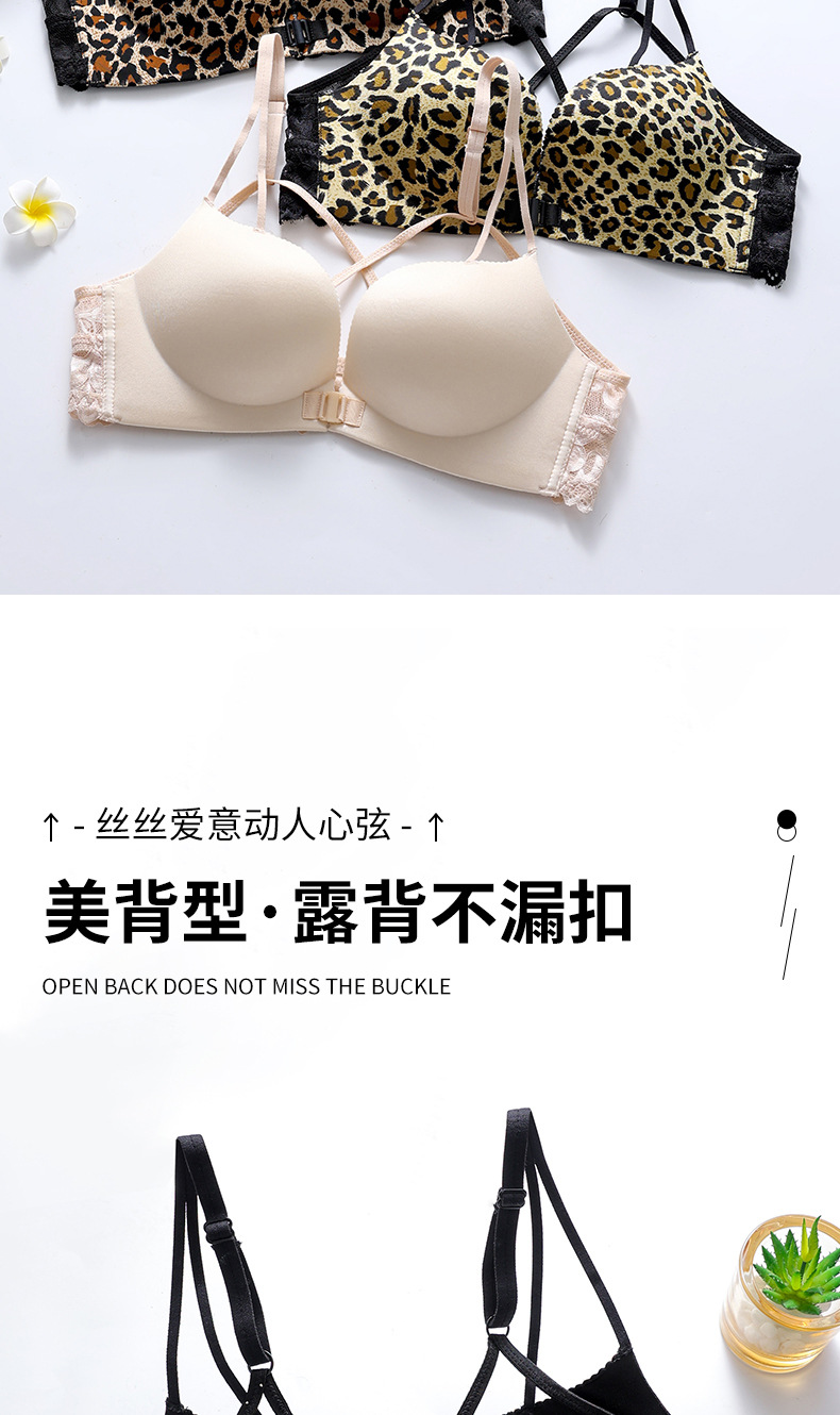 두께 옵션] 크로스 아름다운 뒤 레오파드 무늬 앞 버클 속옷 여성의 작은 가슴은 강철 반지 가슴이없는 브래지어 섹시스토어 가기
