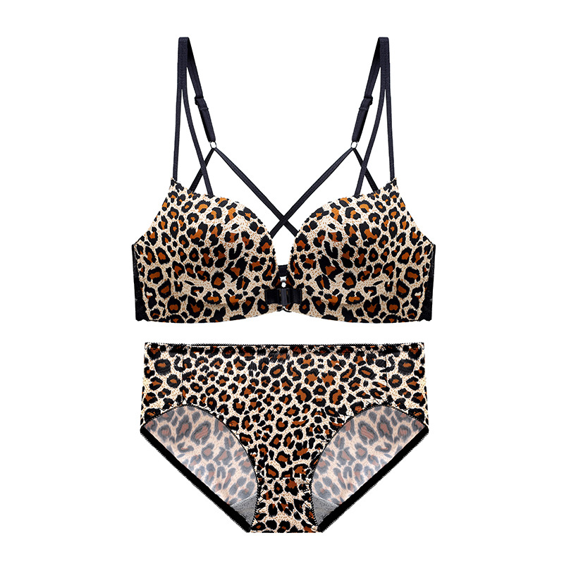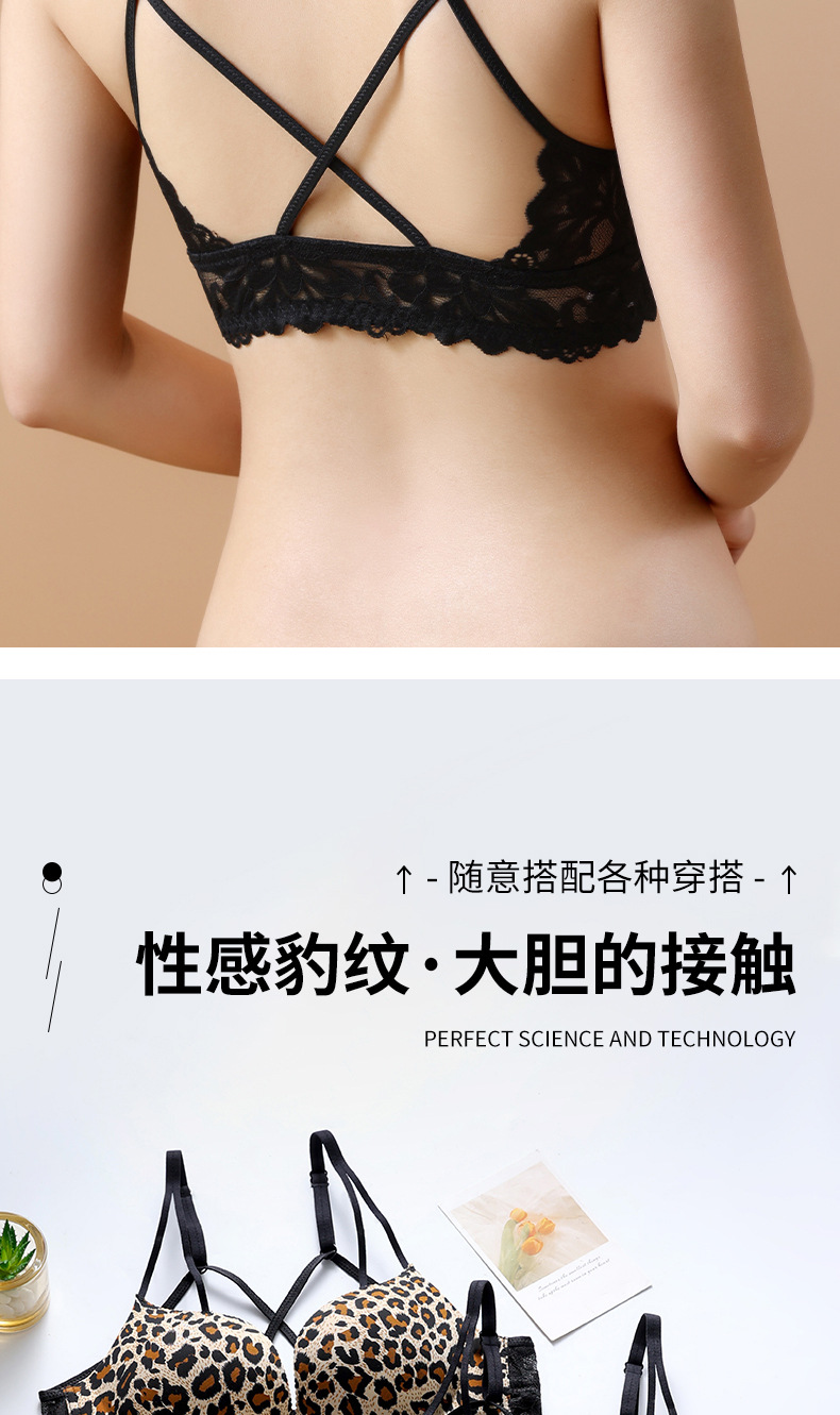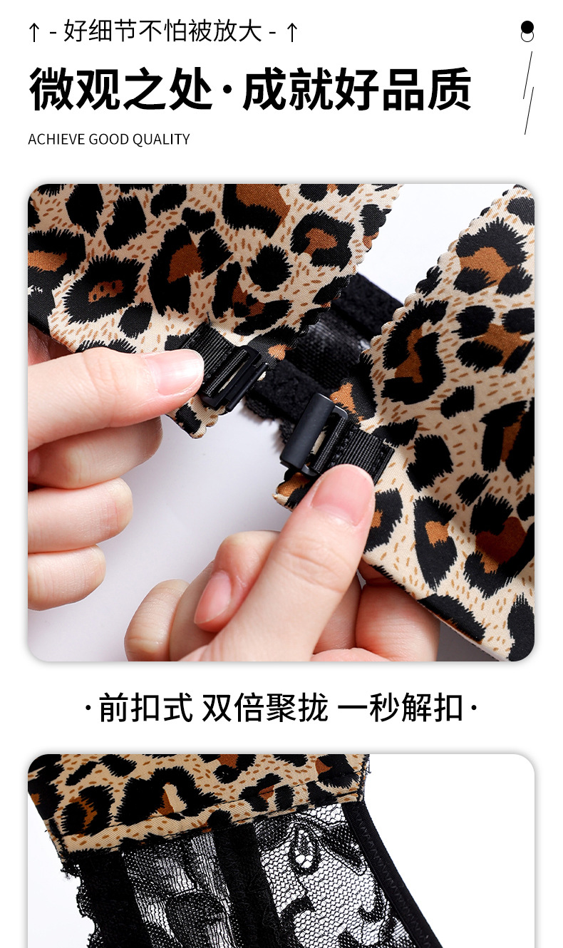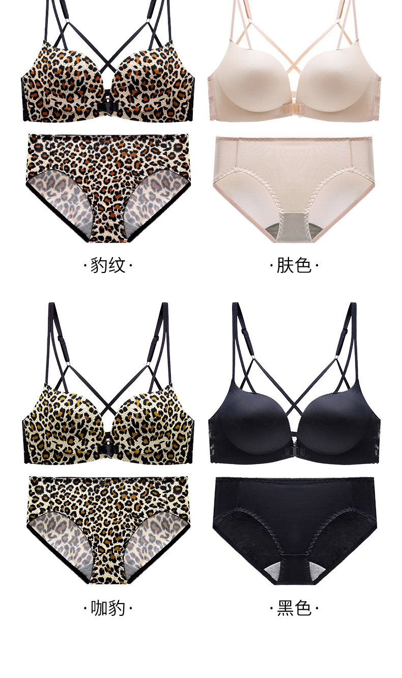 두께 옵션] 크로스 아름다운 뒤 레오파드 무늬 앞 버클 속옷 여성의 작은 가슴은 강철 반지 가슴이없는 브래지어 섹시스토어 가기