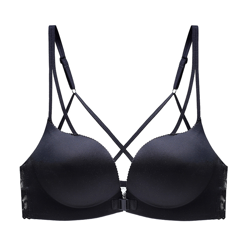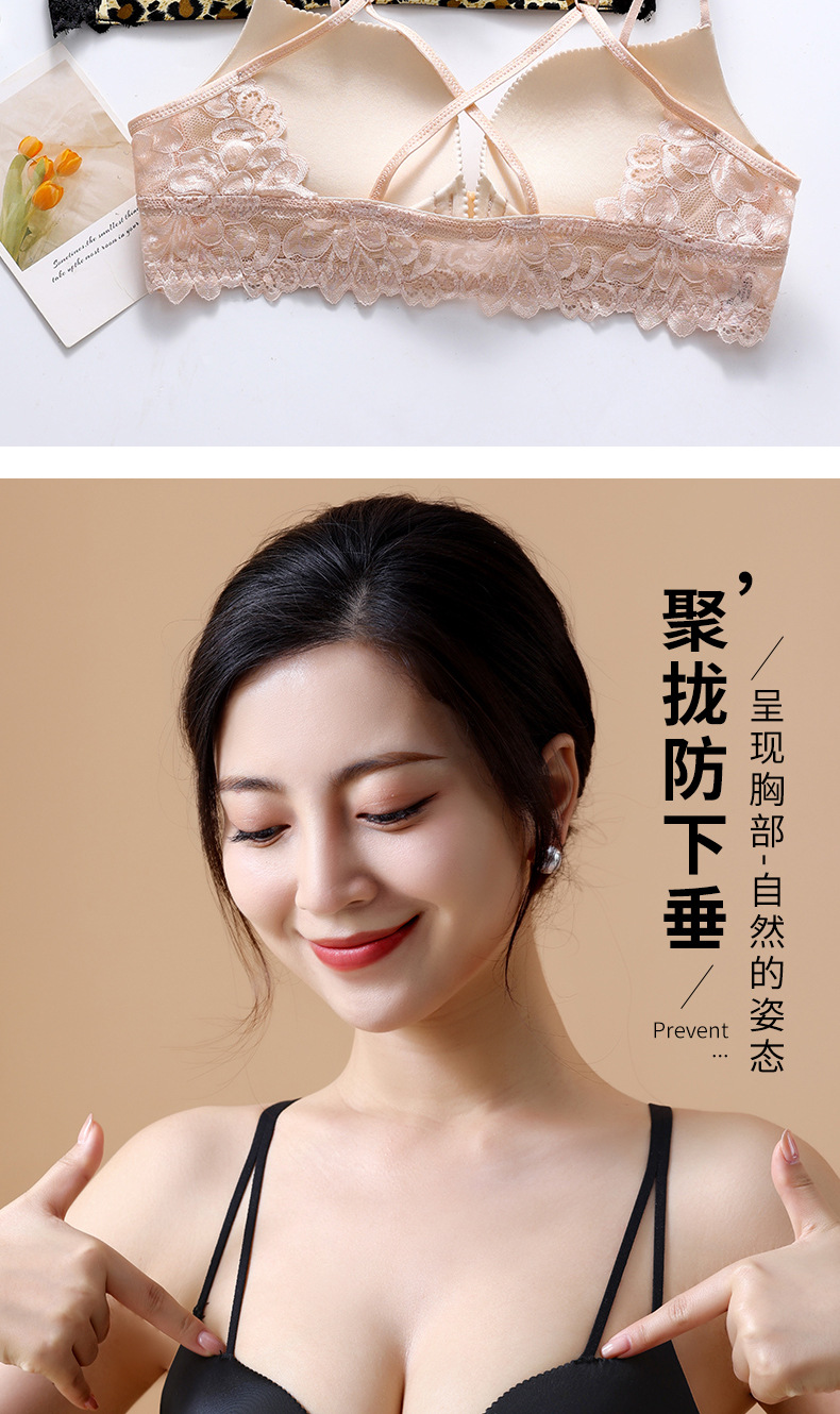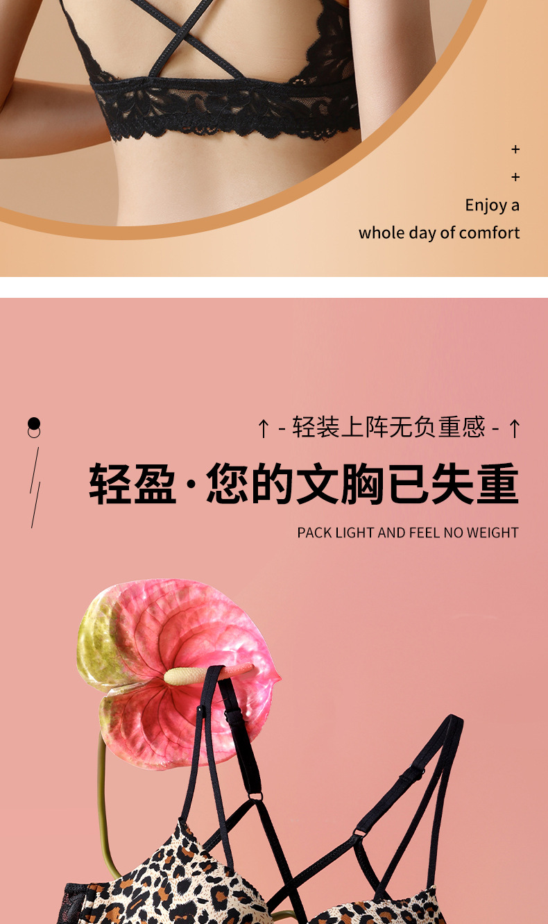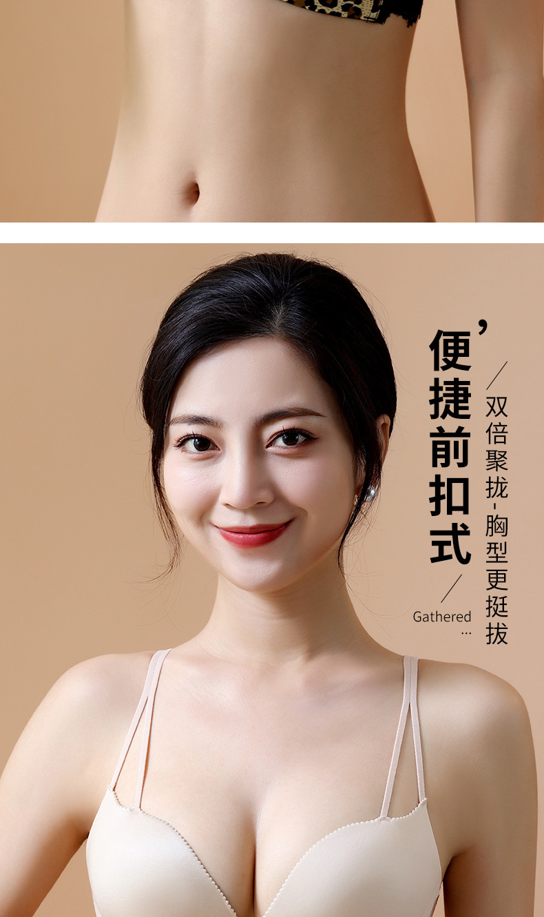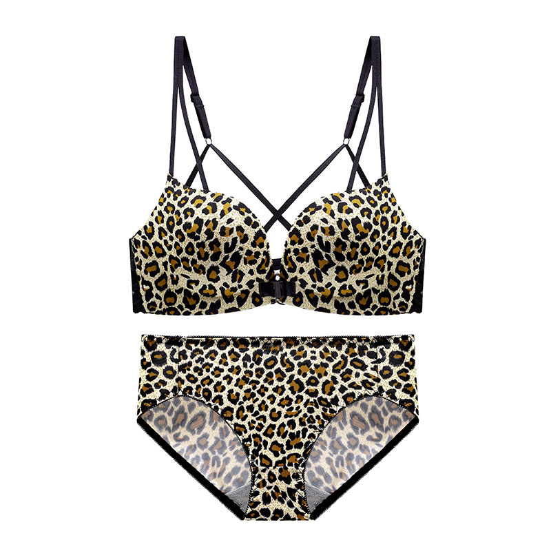 두께 옵션] 크로스 아름다운 뒤 레오파드 무늬 앞 버클 속옷 여성의 작은 가슴은 강철 반지 가슴이없는 브래지어 섹시스토어 가기