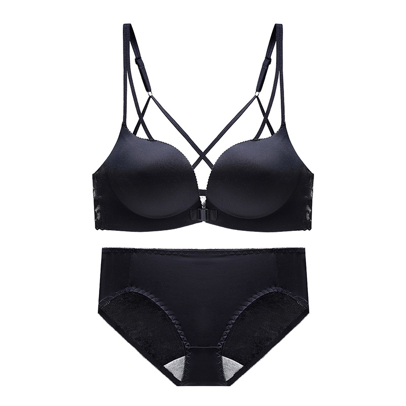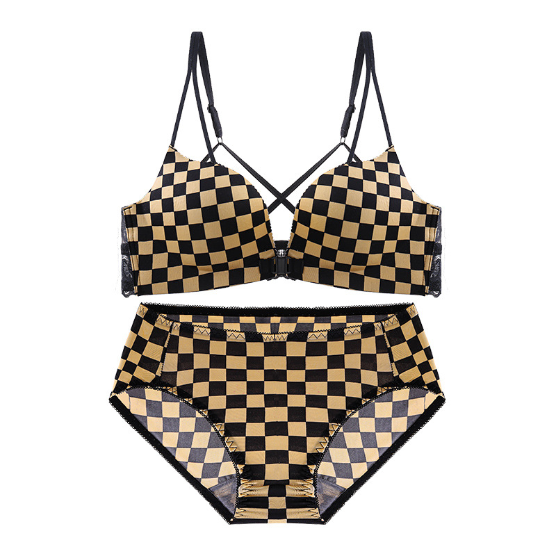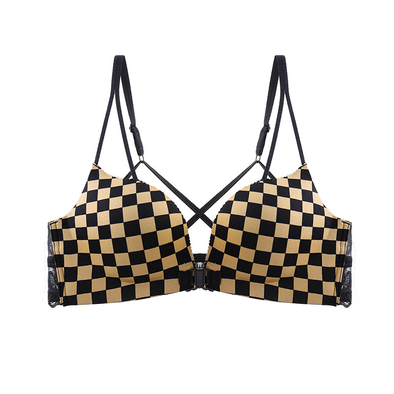 두께 옵션] 크로스 아름다운 뒤 레오파드 무늬 앞 버클 속옷 여성의 작은 가슴은 강철 반지 가슴이없는 브래지어 섹시